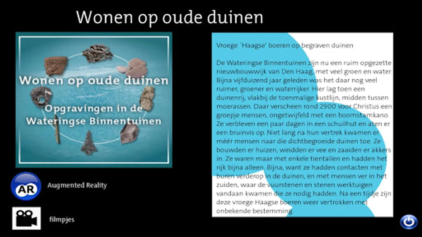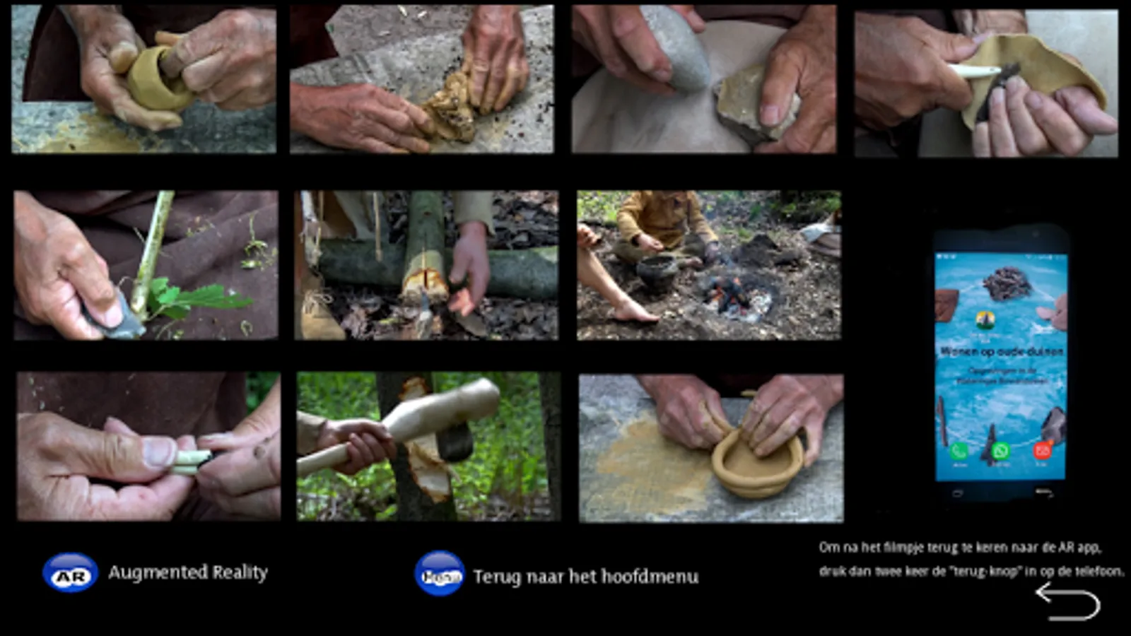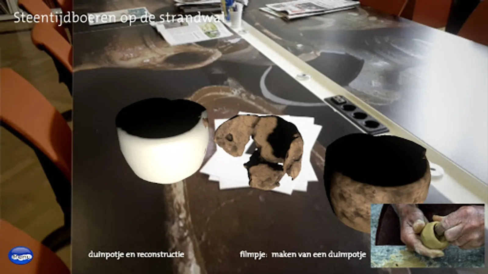 This archaeological public book contains a number of Augmented Reality (AR) images. You can see this by downloading the app. Open the app and go to the pages with the AR sign. Here you can get nice extra information about the image through AR.