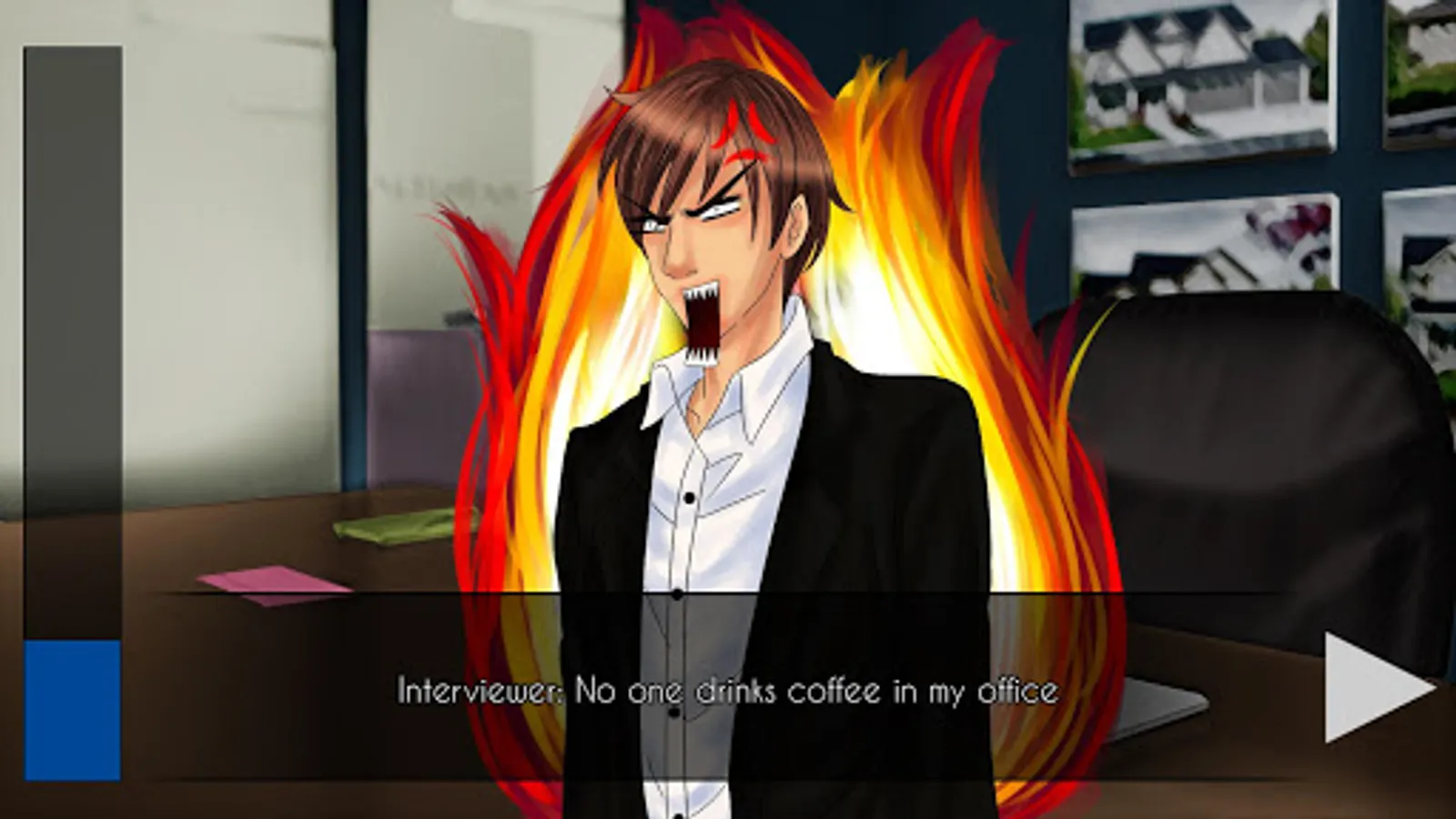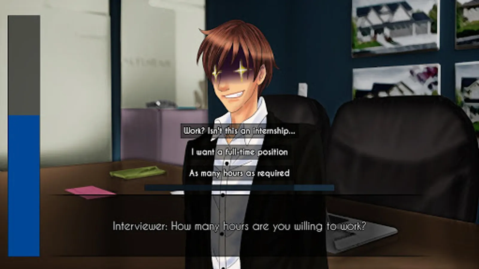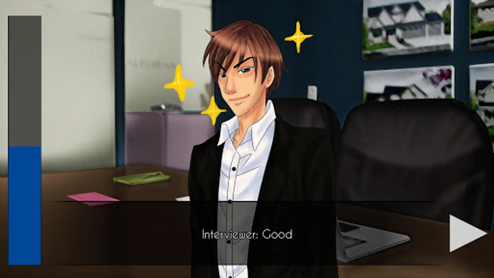 Play the role of a newly graduate attending a job interview, hoping to find his dream job... But the interviewer will not be easy to impress!