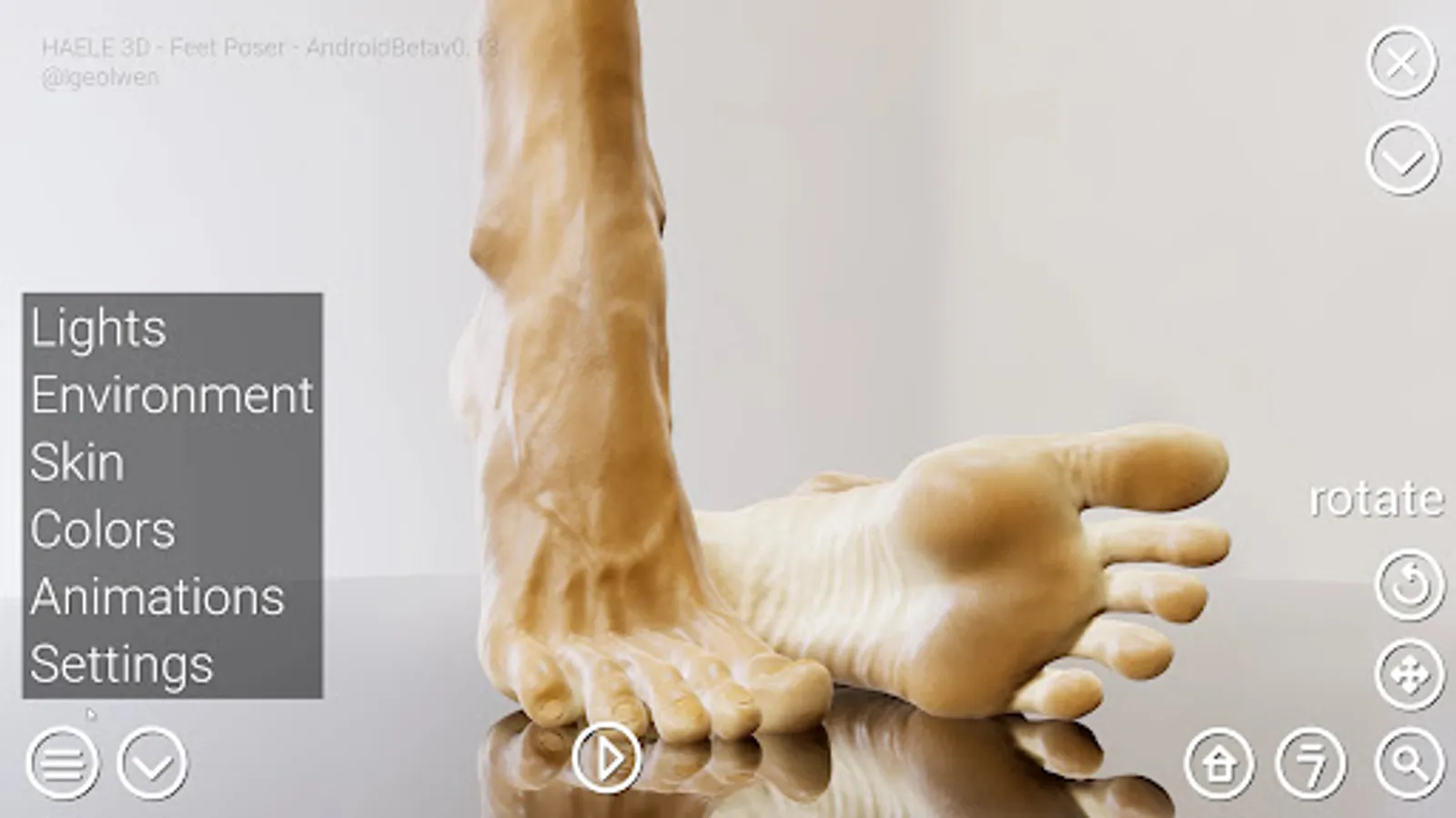 HAELE is a versatile 3D feet poser and customizer app. It is an easy to use foot anatomy reference tool for the artist, with a wide palette of detailed options and animations to create the feet you need be it highly realistic or stylized. Change poses, lighting, materials, colors and many more.