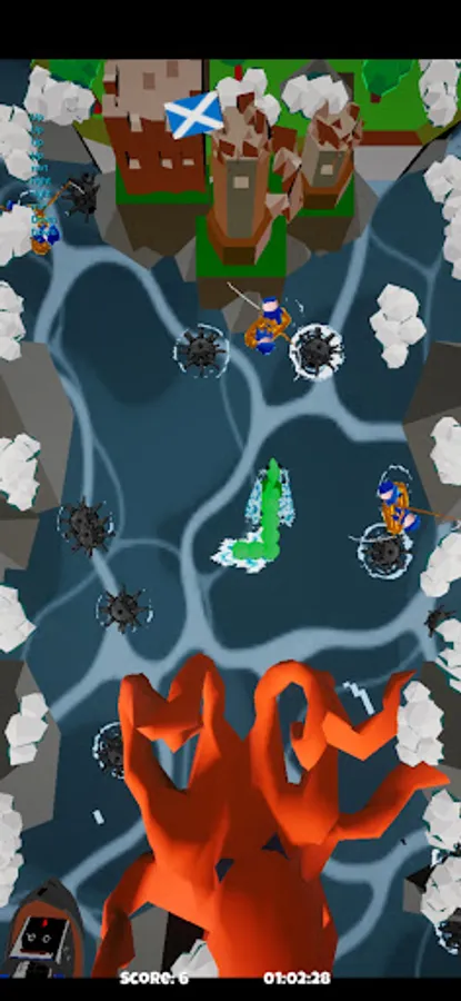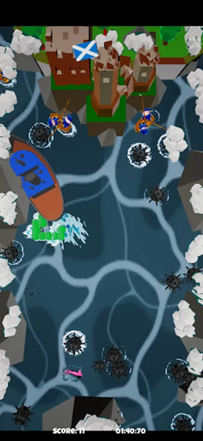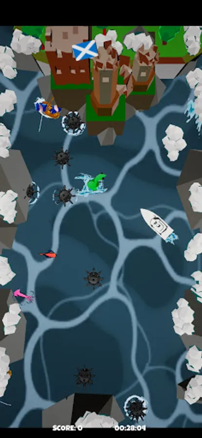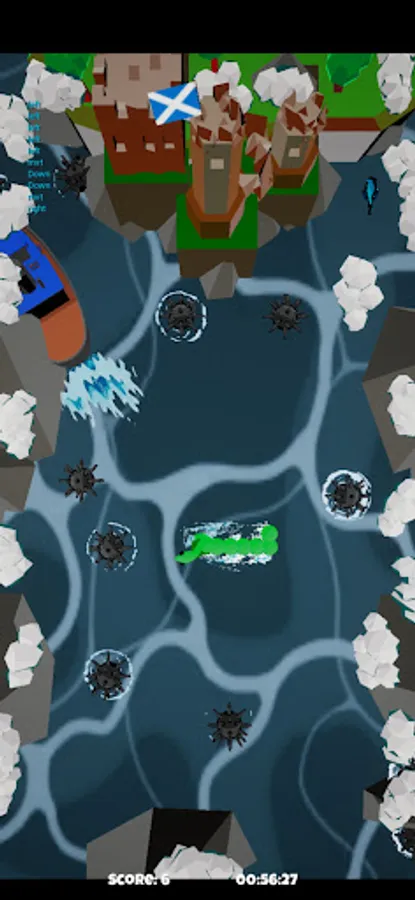 Slalomez dans le lac pour éviter les mines marines qui parsèment le niveau.