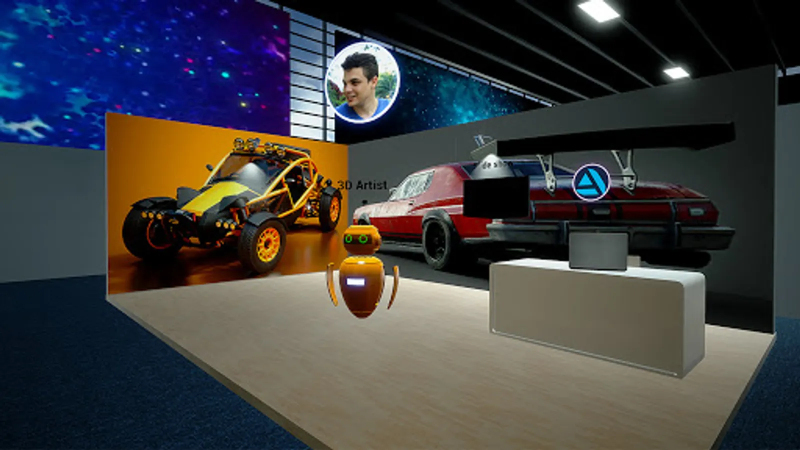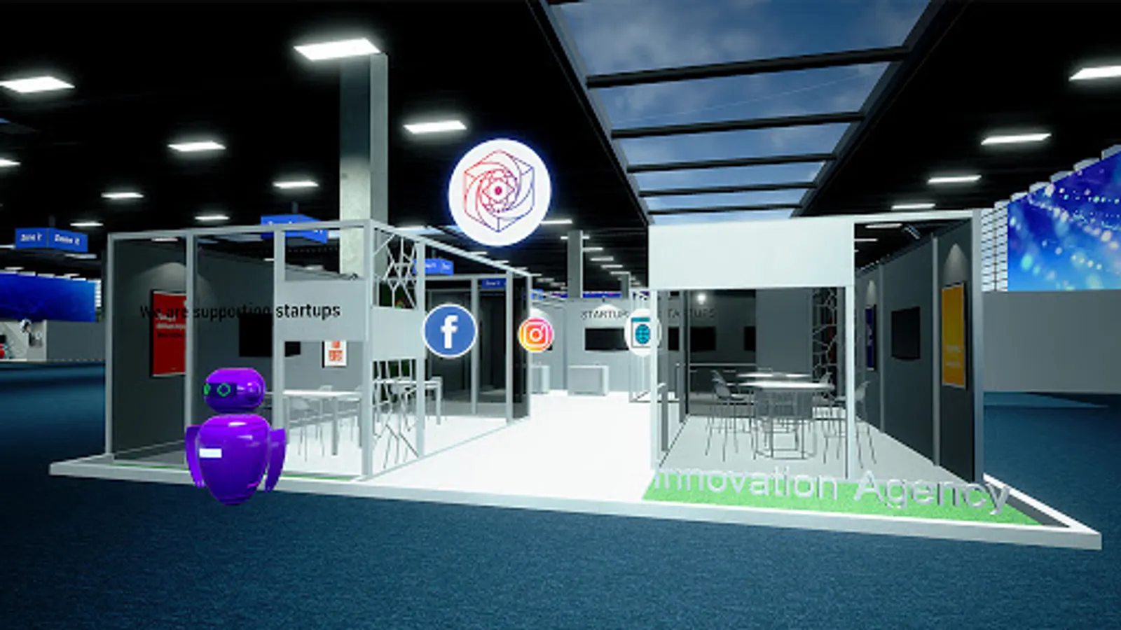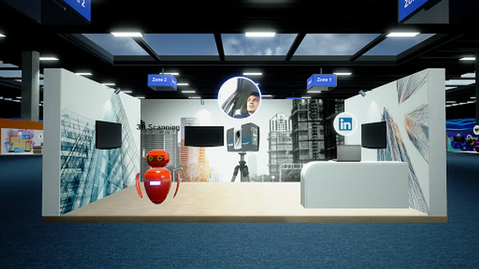 The building itself is modeled after the Expo Center in Azerbaijan. And there are many virtual stands. Here you can take part in : game developers, software and web developers, 3D Artist, designers, etc. A virtual stand can be used by participants to show: video, slide show presentation, as well as animation of 3D objects.