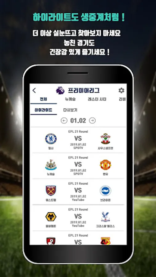 Leagues, teams, highlights, and re-view filtering to see only the games you want to see.