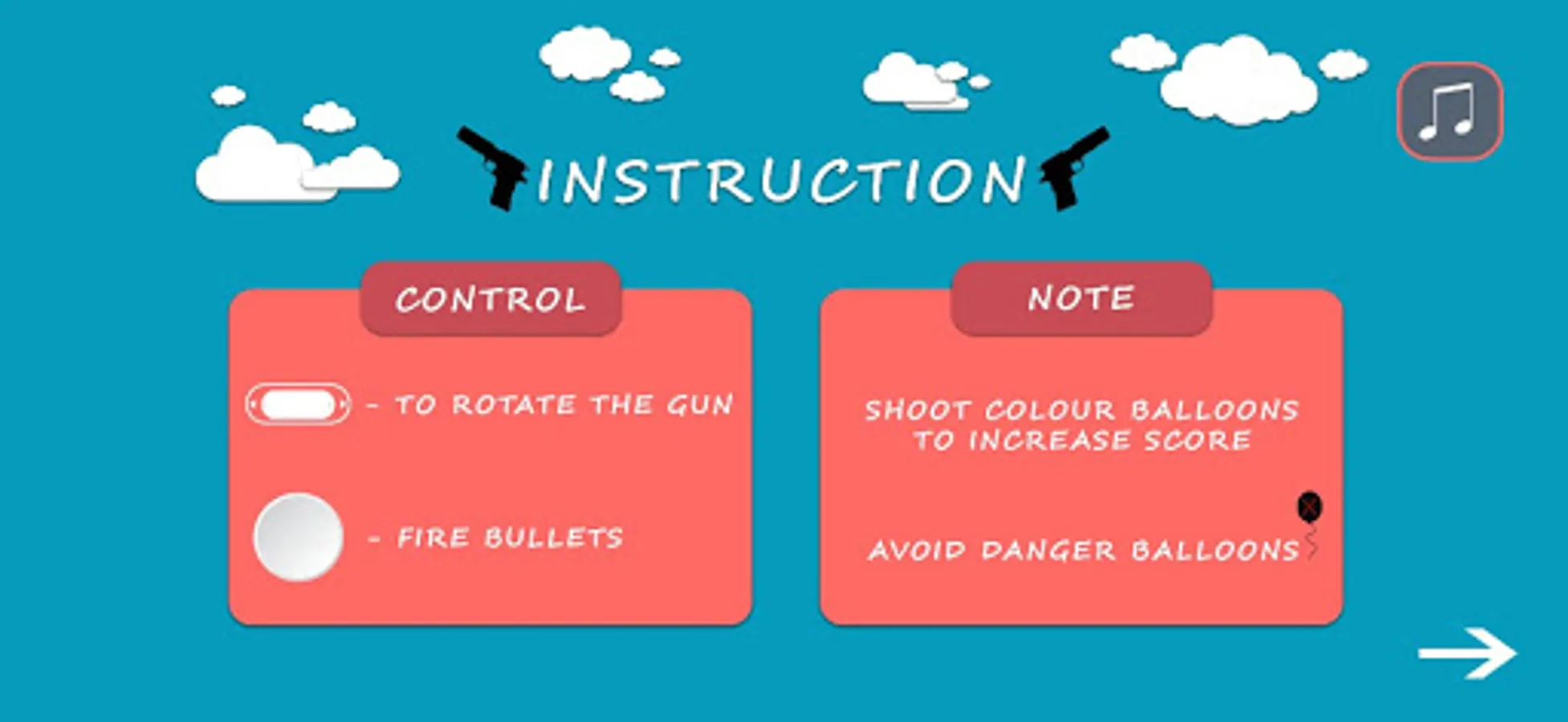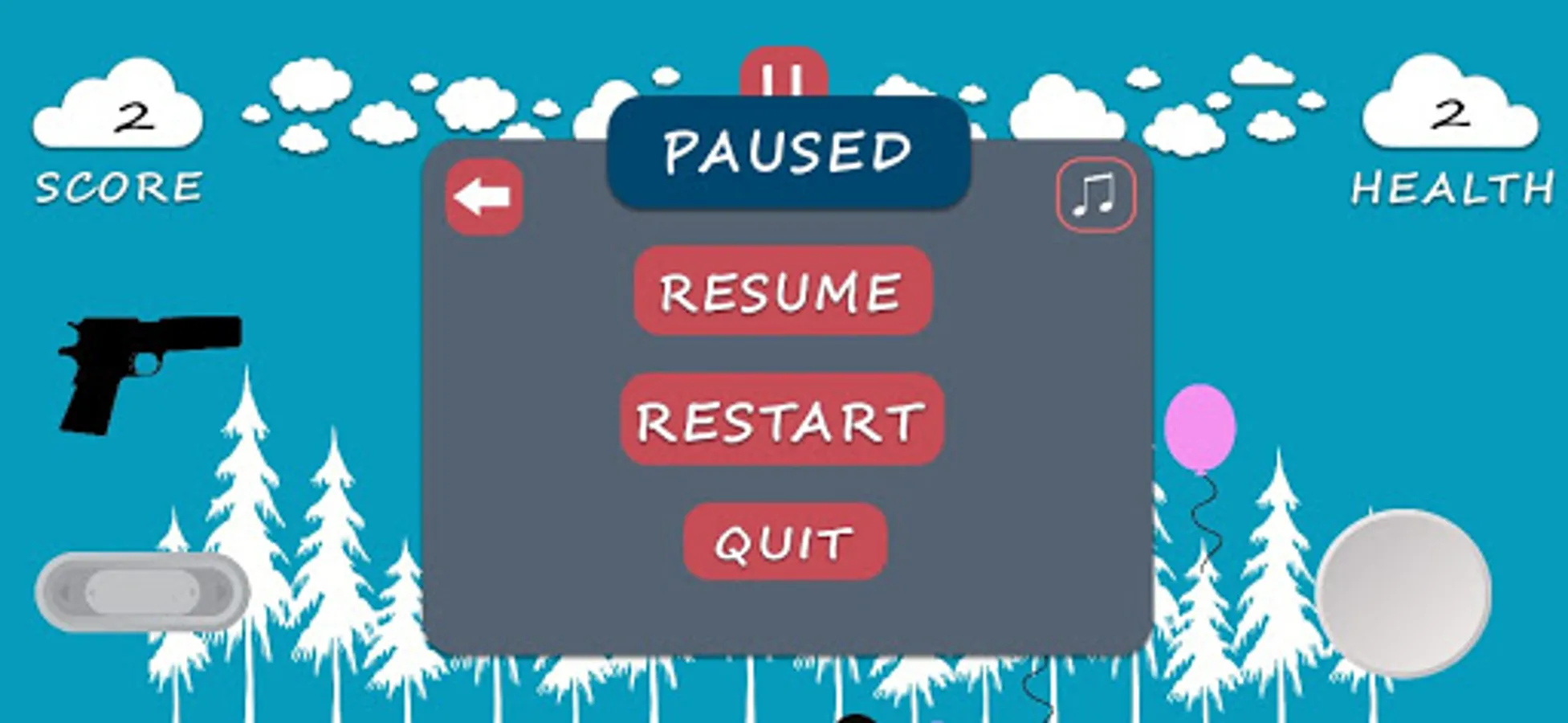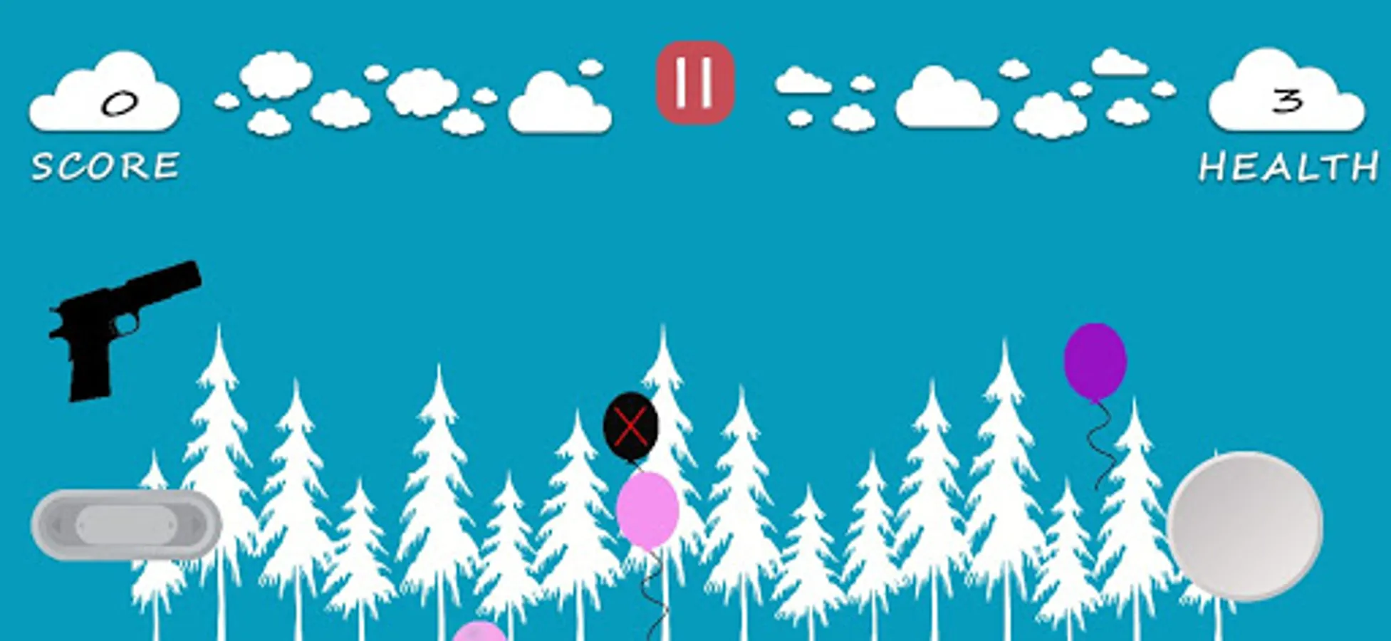 BALLOONS FLYING IN THE SKY. ON SHOOTING THE BALLOONS YOU GET POINTS.
