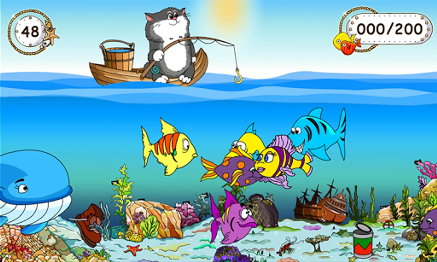 In this game you have to go on a fishing trip. The goal of the game for baby is simple - you need to catch as many fish and collect the required number of points to pass the level. For each caught a fish you'll get points. But if you are caught on a hook shoe tin or a dangerous predator - the points will be reduced