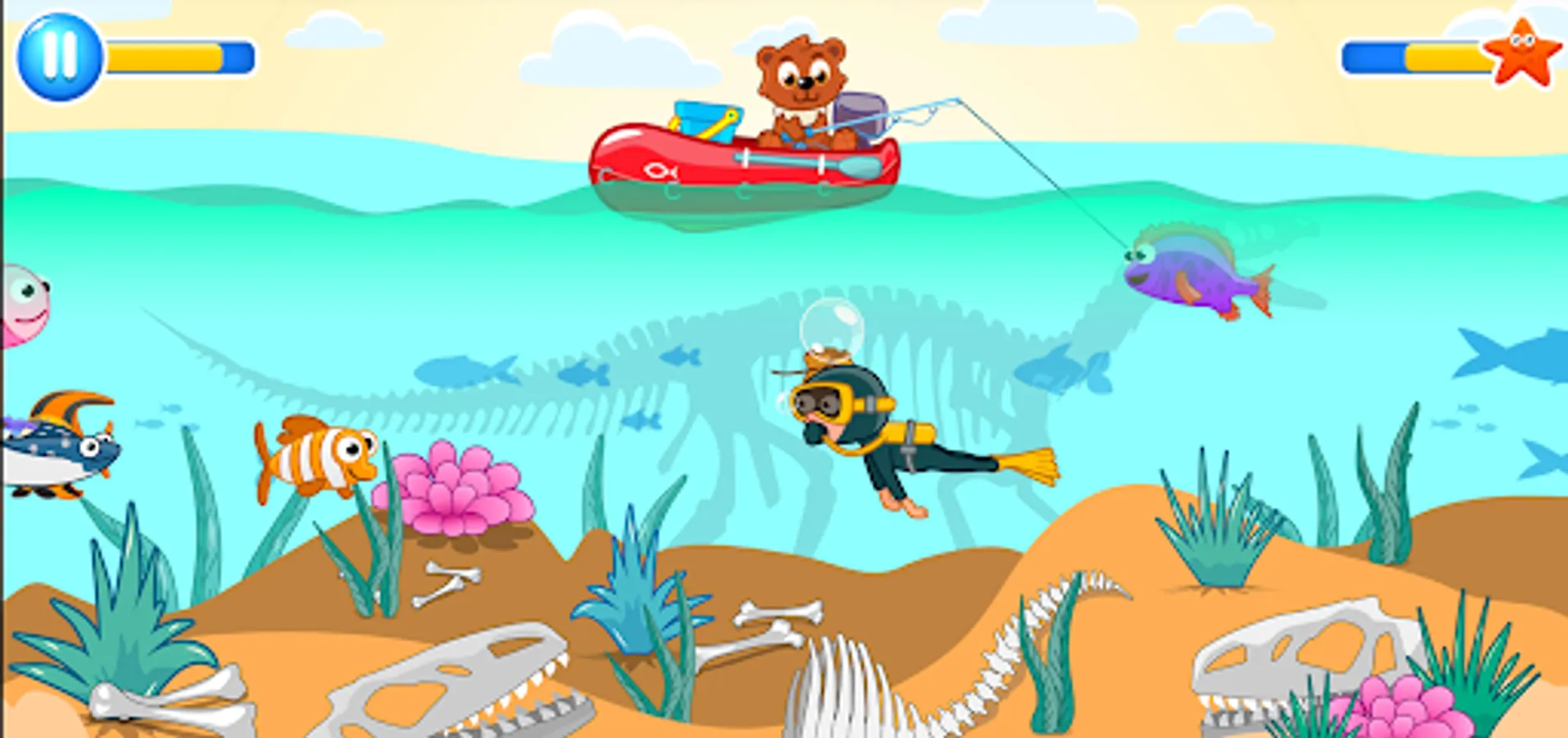 For the fish you catch, you get points, which are displayed at the top of the playing field. The obtained points can be used to buy new boats.