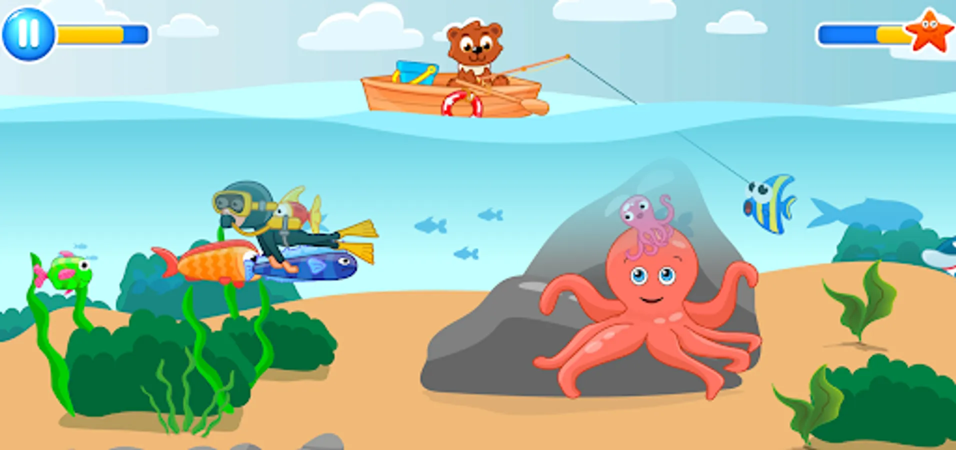 Each new level takes you further along the route and you travel between islands. At first, the levels are easy, but gradually they become more difficult - the speed of the fish increases and the player must try not to miss the fish.