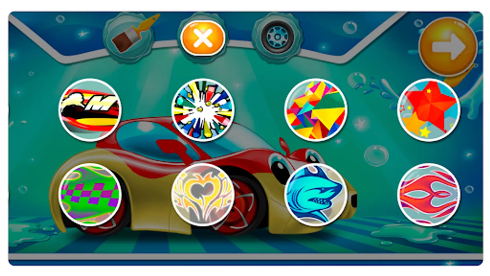 designers. The game has many different models of cars, so that the baby chooses a car, what he likes. Machine needs to be washed using detergent, water, washcloth, and then the machine can be painted. Also you can select and apply a varied pattern and change discs.