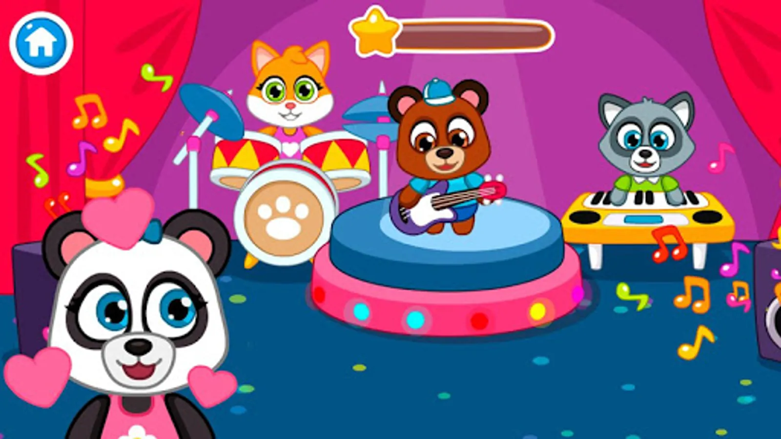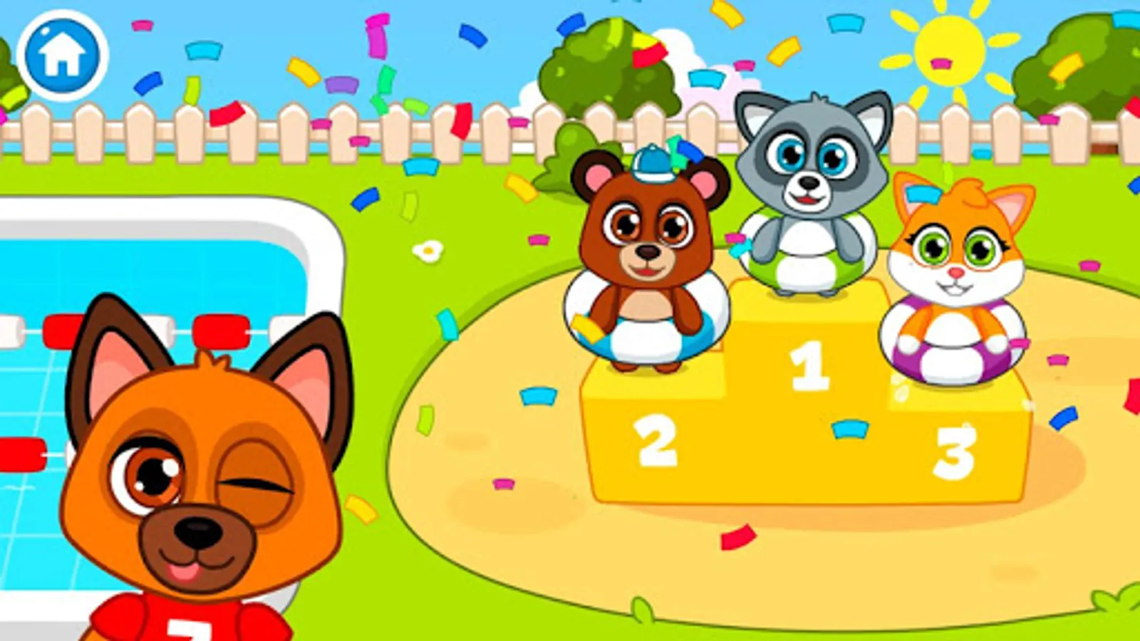 There are many different locations in the game where your child has to help characters to play musical instruments, play toys with them, help clean the garden, ride on a swing, learn a little and of course swim in the pool. And don’t forget to feed the characters and put them to sleep!