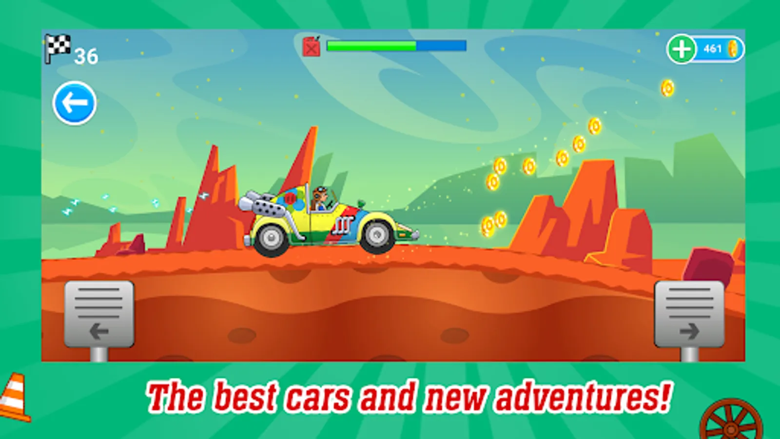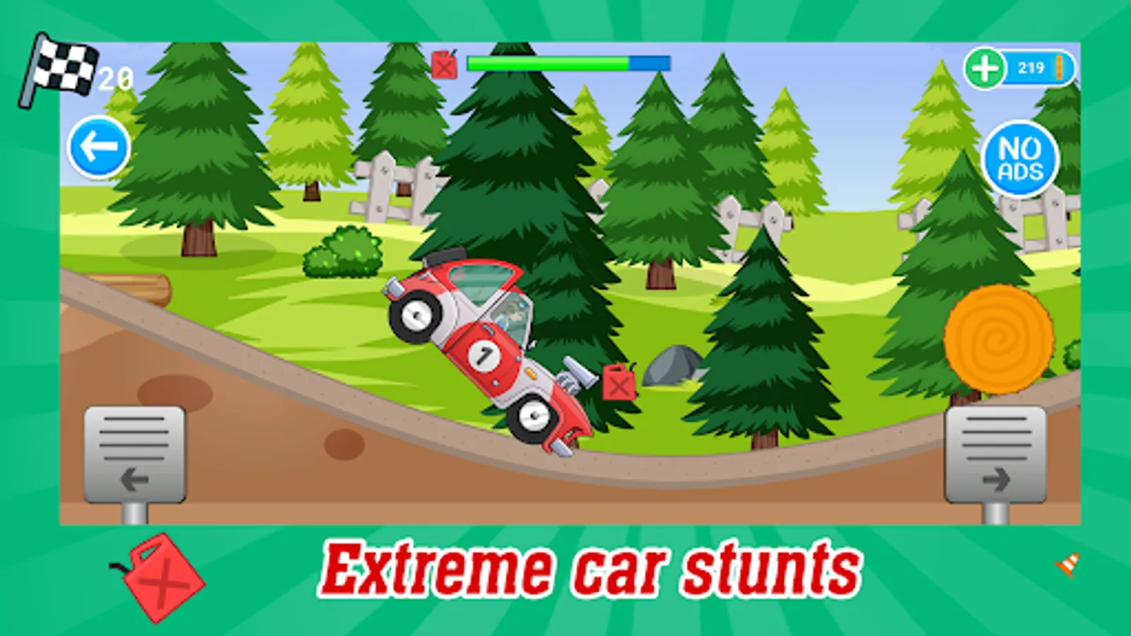 Car racing games are the best, very simple and intuitive games for drivers of all ages. In the game, players will need to choose their vehicles, and not just choose, but assemble cars from several parts. And in this they will be helped by fantasy and a sense of style. It is very easy to operate our machine with two fingers. Drive at incredible speeds as your car bounces, spins in the air, rolls around and performs other fun stunts when it hits obstacles. But be very careful, don't let the gas run out and don't let the car fall on the roof!