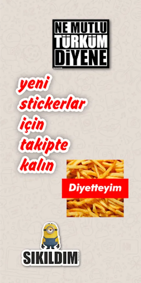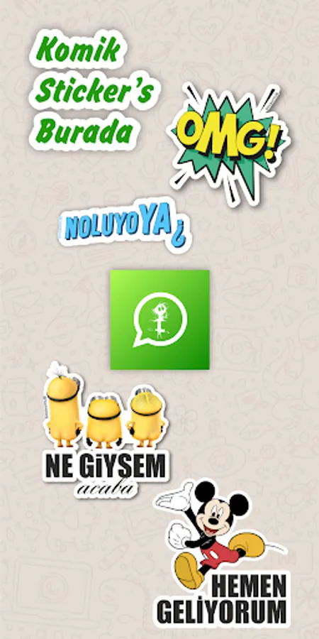 We are with you with hundreds of Whatsapp Stickers in the most original designs and our constantly renewed Global Stickers library. Use the funniest Whatsapp stickers in your chats with your loved ones. You can easily import designs adapted from Real Stickers and Stickers to Whatsapp. We have prepared beautiful emojis, cartoon and movie characters, series, movie actors and many funny content for you humorously.