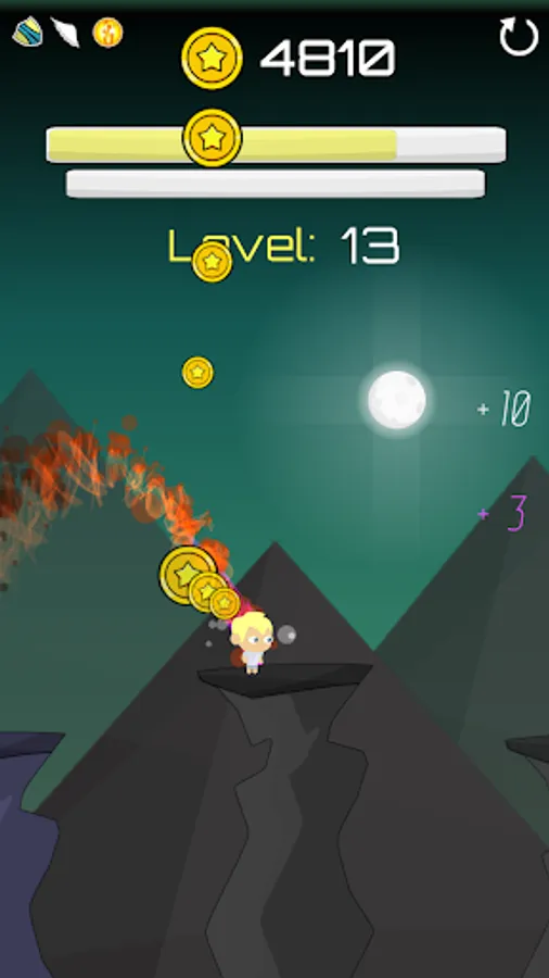 Find the right moment and jump to the next cliff, avoid the obstacles on the way.