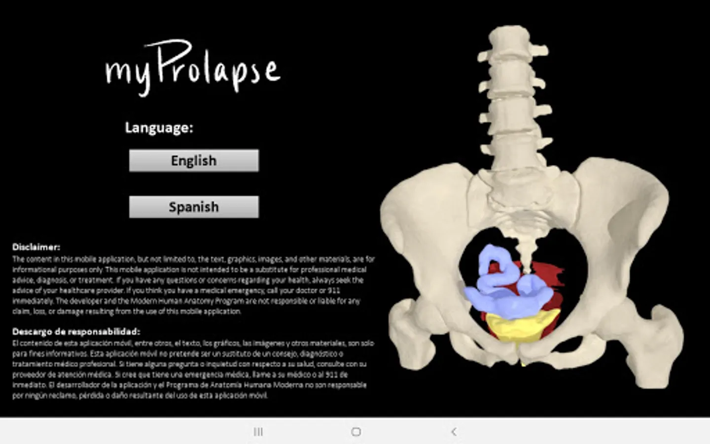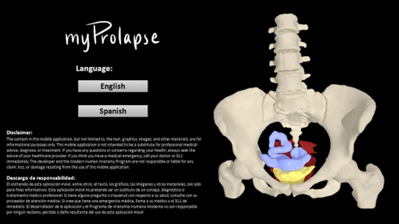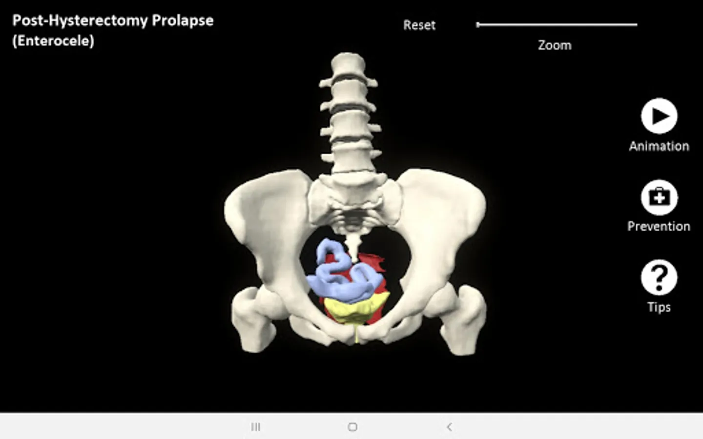 myProlapse was primarily developed for healthcare providers to use as a visual aid during counseling to educate post-hysterectomy patients on the anatomy of their prolapse. Patients can also use the mobile app to educate family and friends regarding their condition.