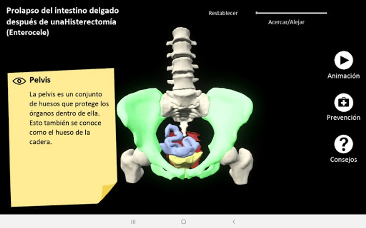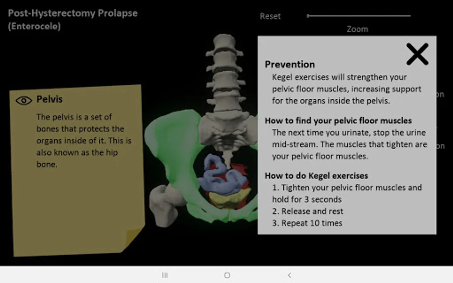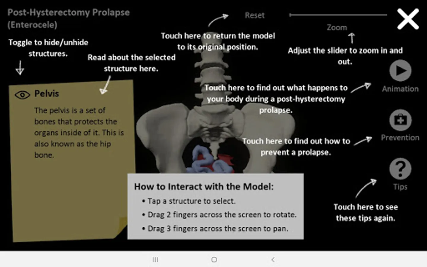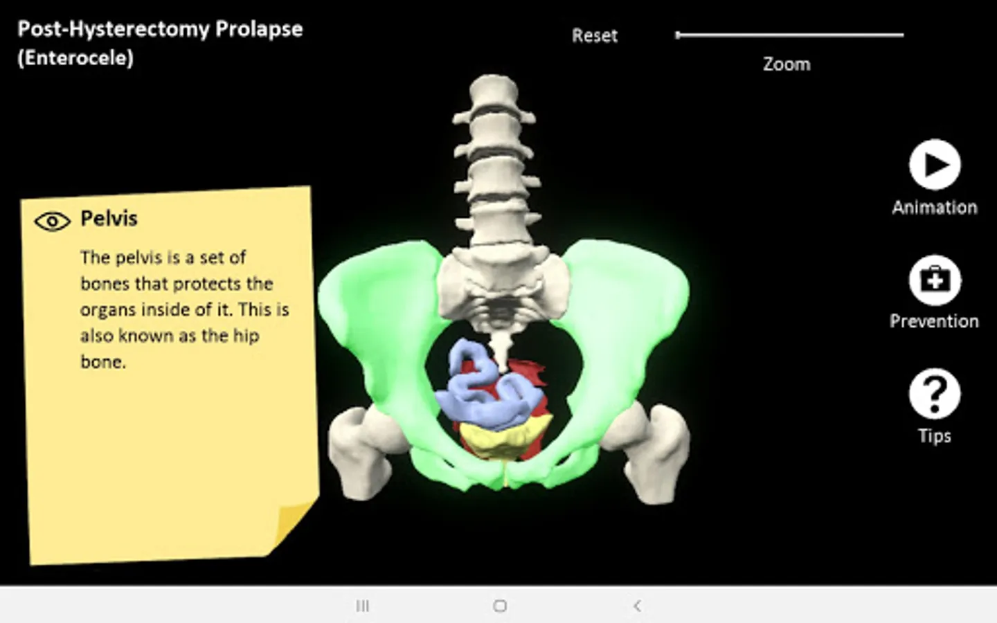 myProlapse was primarily developed for healthcare providers to use as a visual aid during counseling to educate post-hysterectomy patients on the anatomy of their prolapse. Patients can also use the mobile app to educate family and friends regarding their condition.
