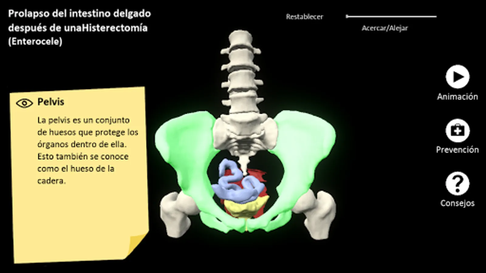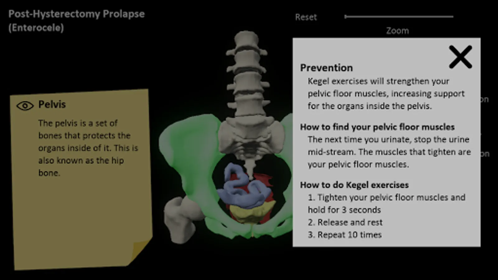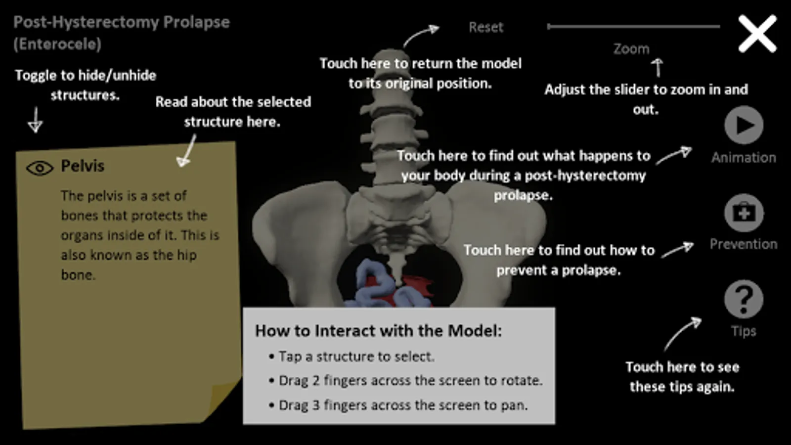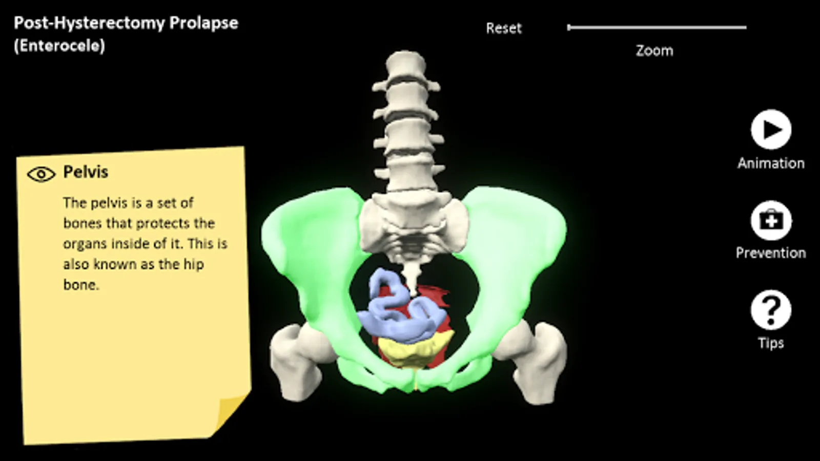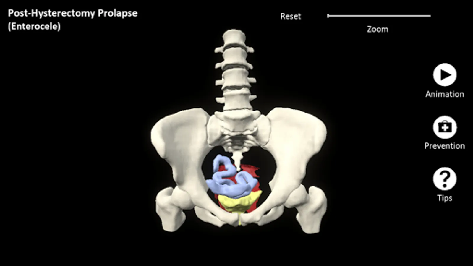 myProlapse is an interactive patient education resource depicting the anatomy of a post-hysterectomy prolapse (enterocele).