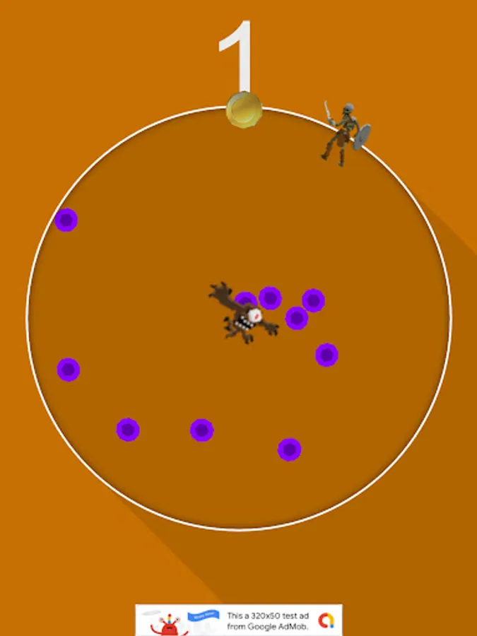 This is a game where you try to get coins and aim for a high score while avoiding the monster attacks in the center.