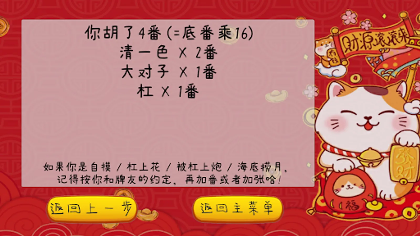 The super cute Sichuan Mahjong helper is now available! Are you a beginner who has just started Sichuan Mahjong and enjoys to play mahjong with your friends, but sometimes the cards in your hand are so complicated, you don’t know how to count "Fan" (how much you win) or you are not sure if there is any "Hu" in your cards? With this little helper, just a few clicks, the answer will be instantly revealed! You can also customize the fan type according to the habits of you and your friends! 超可爱的四川麻将算番小助手来啦!你是否刚入门四川麻将,喜欢和牌友们快乐搓麻,却苦于有时手里的牌好复杂,不确定如何算番(赢多少)或者不确定自己的牌到底有没有胡?有了这款小帮手,只需把你的牌点进去,瞬间给你揭晓答案!还可按你和麻友的习惯个性化配置和番数哦!