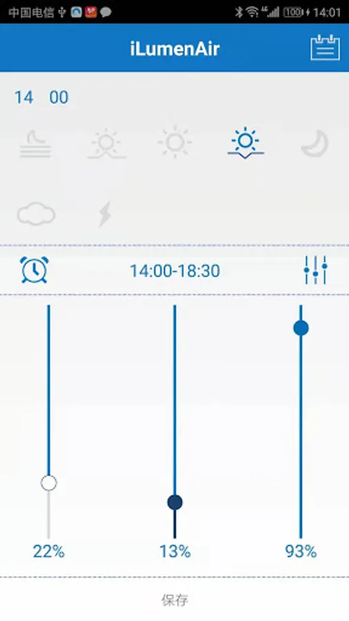 - Free adjusting light effect in five timers: dawn, sunrise, daytime, sunset and nighttime. Enable automatic cycle of light shift in a day.