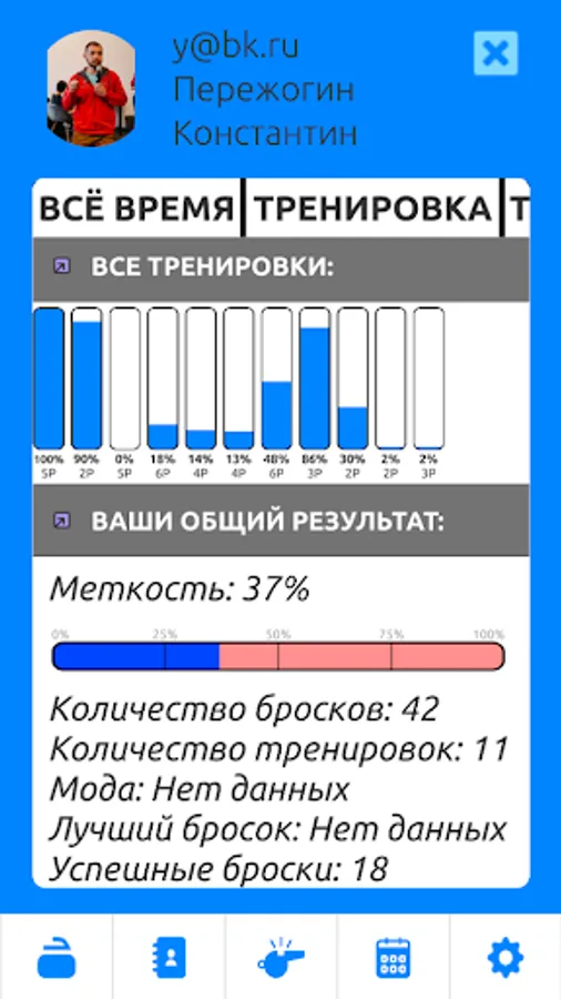 The coach enters the statistics separately for each player, the athletes in one block see the overall statistics for each training session and statistics for the entire time. The application displays the rating for the club and throughout Russia.