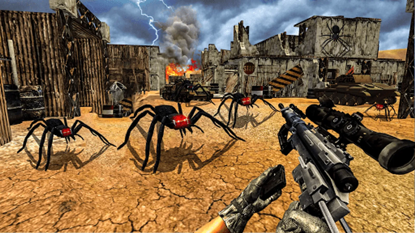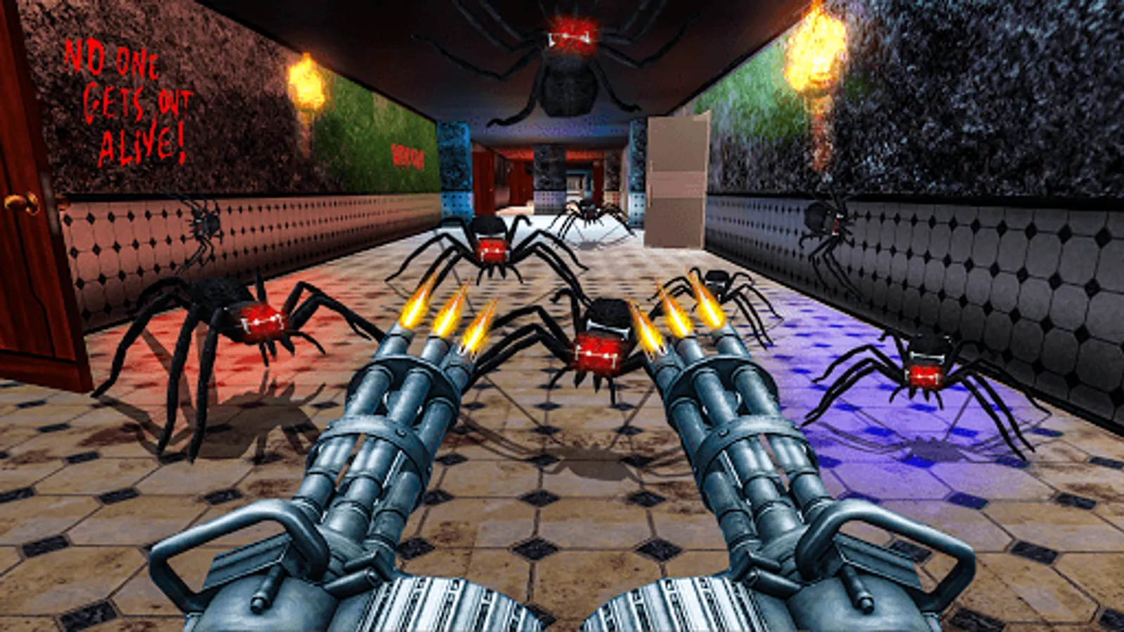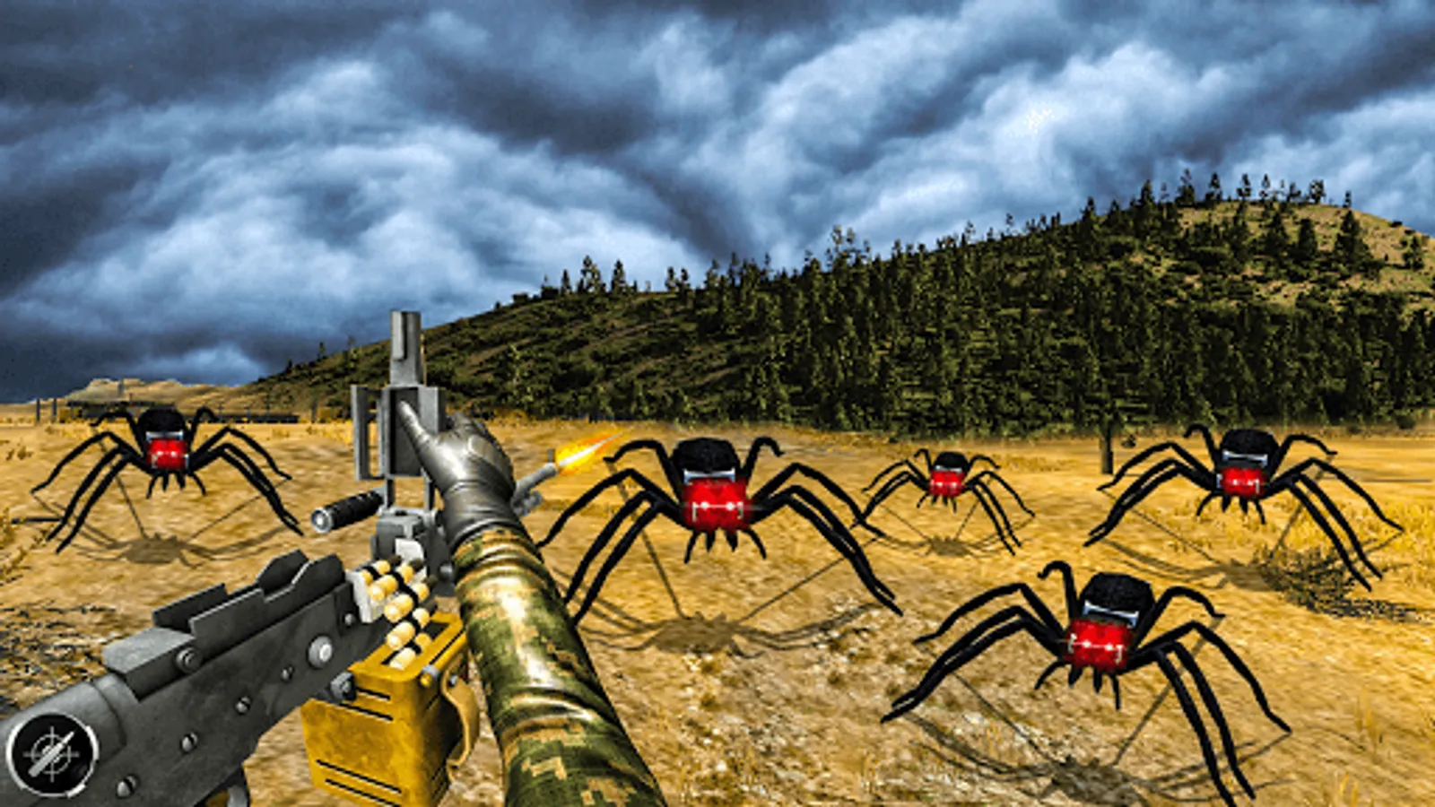 Johnny mind trigger and start feeling little hope of survival, John mind trigger and he start hide n seek games with giant spider to find human if there is any human left or survive from those Monster Spiders he will get fellow man to kill giant spiders and be a spider shooter man and hunt this deadly creature in a deadpool of spider nest Island full of these monster evolution creatures. While searching for humans he finds out a heavy machine Gun.