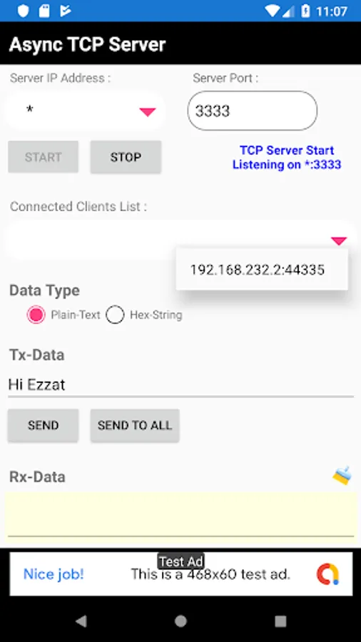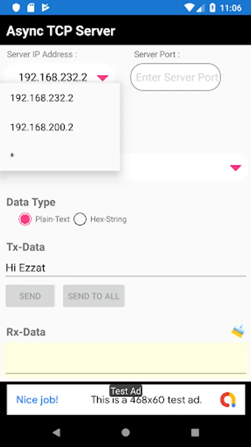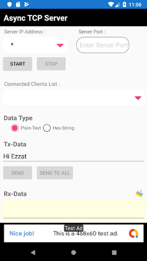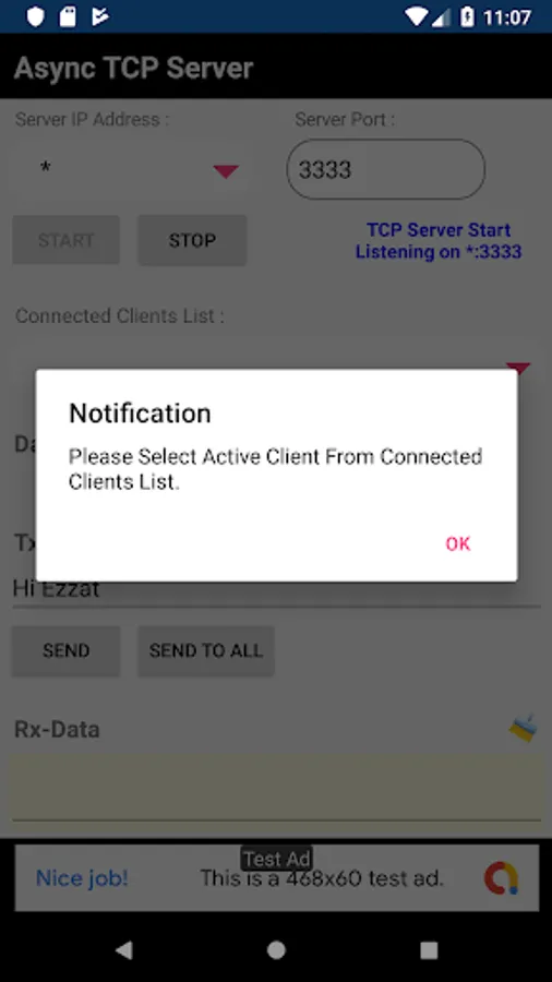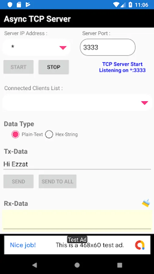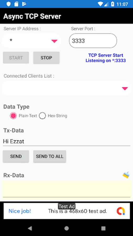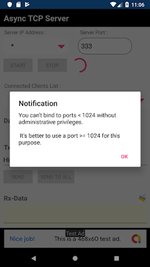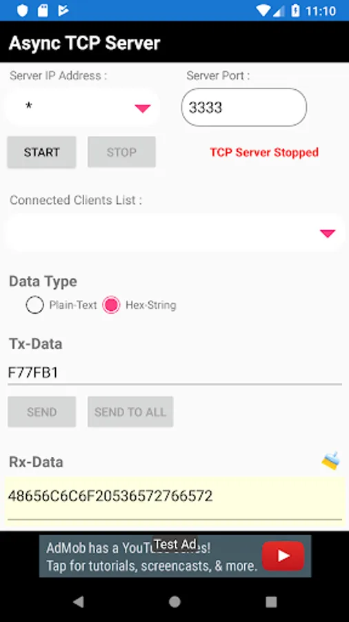 TCP Server that can binding on specified TCP Port and specified local IP address or all local IPs (All(*)) asynchronously.
