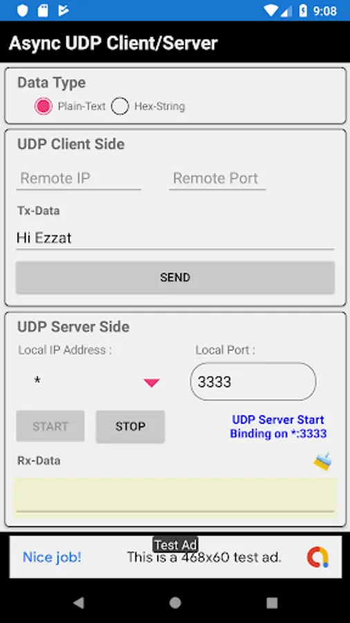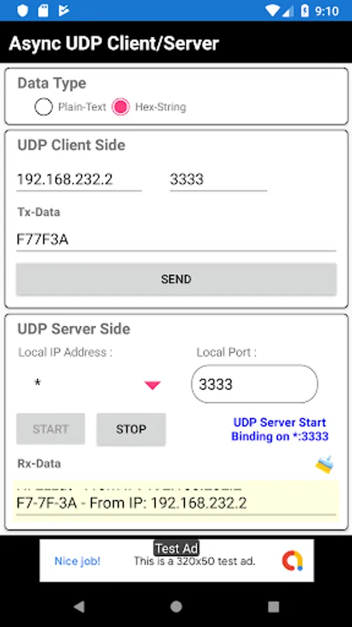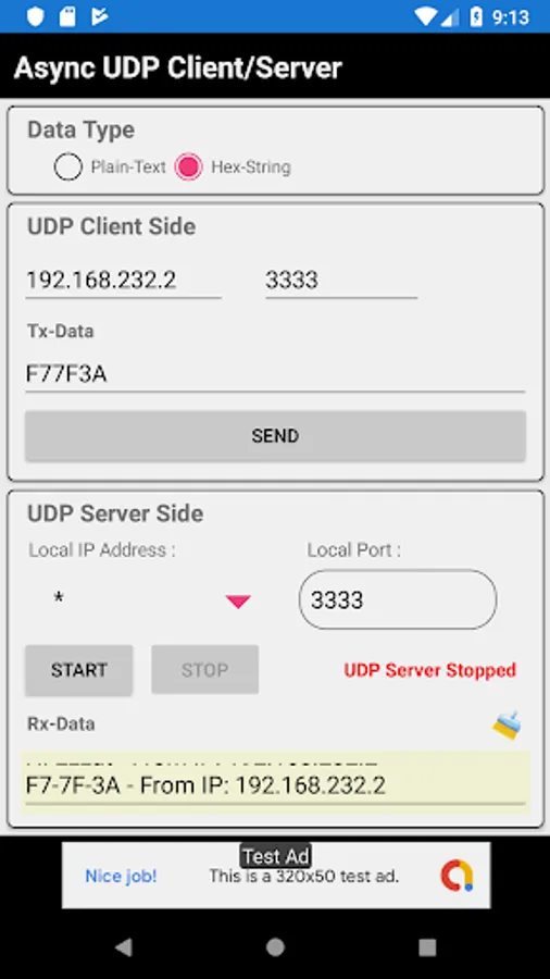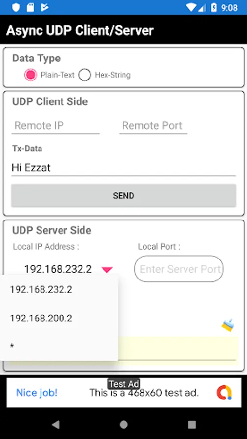 Note: User can use UDP-Client Only Or UDP-Server Only Or Both.