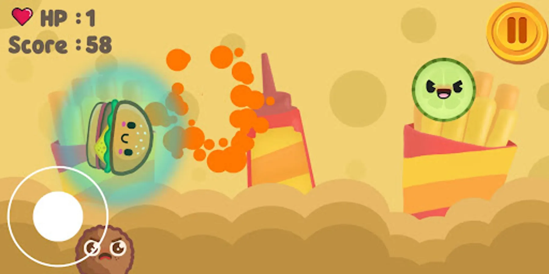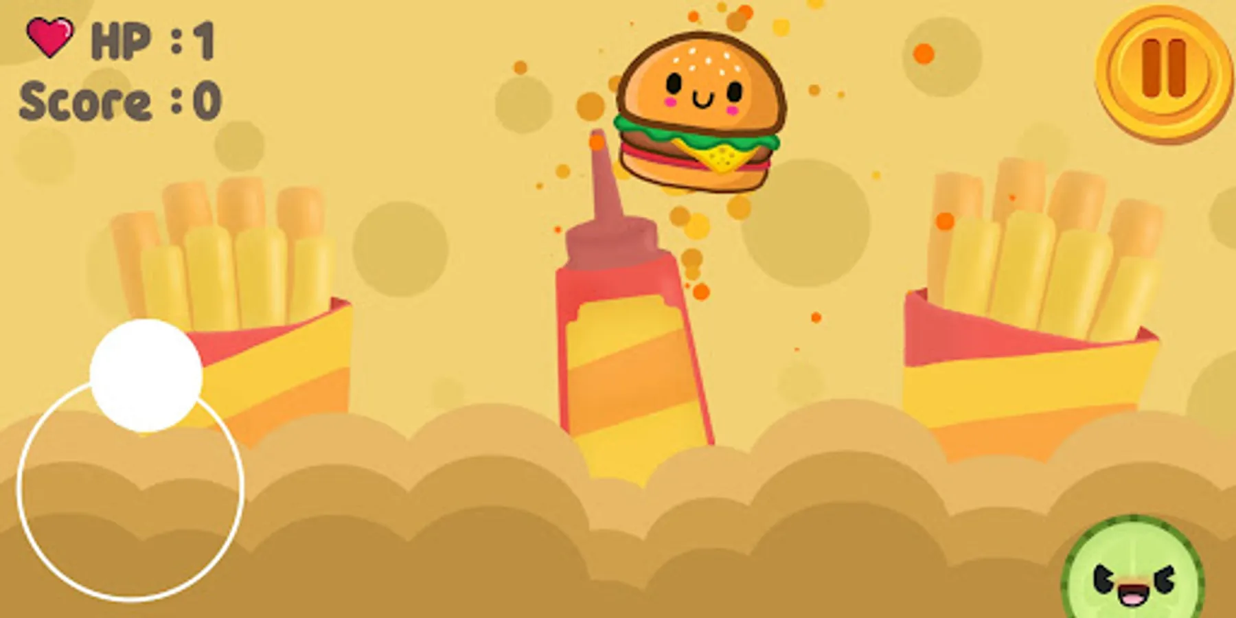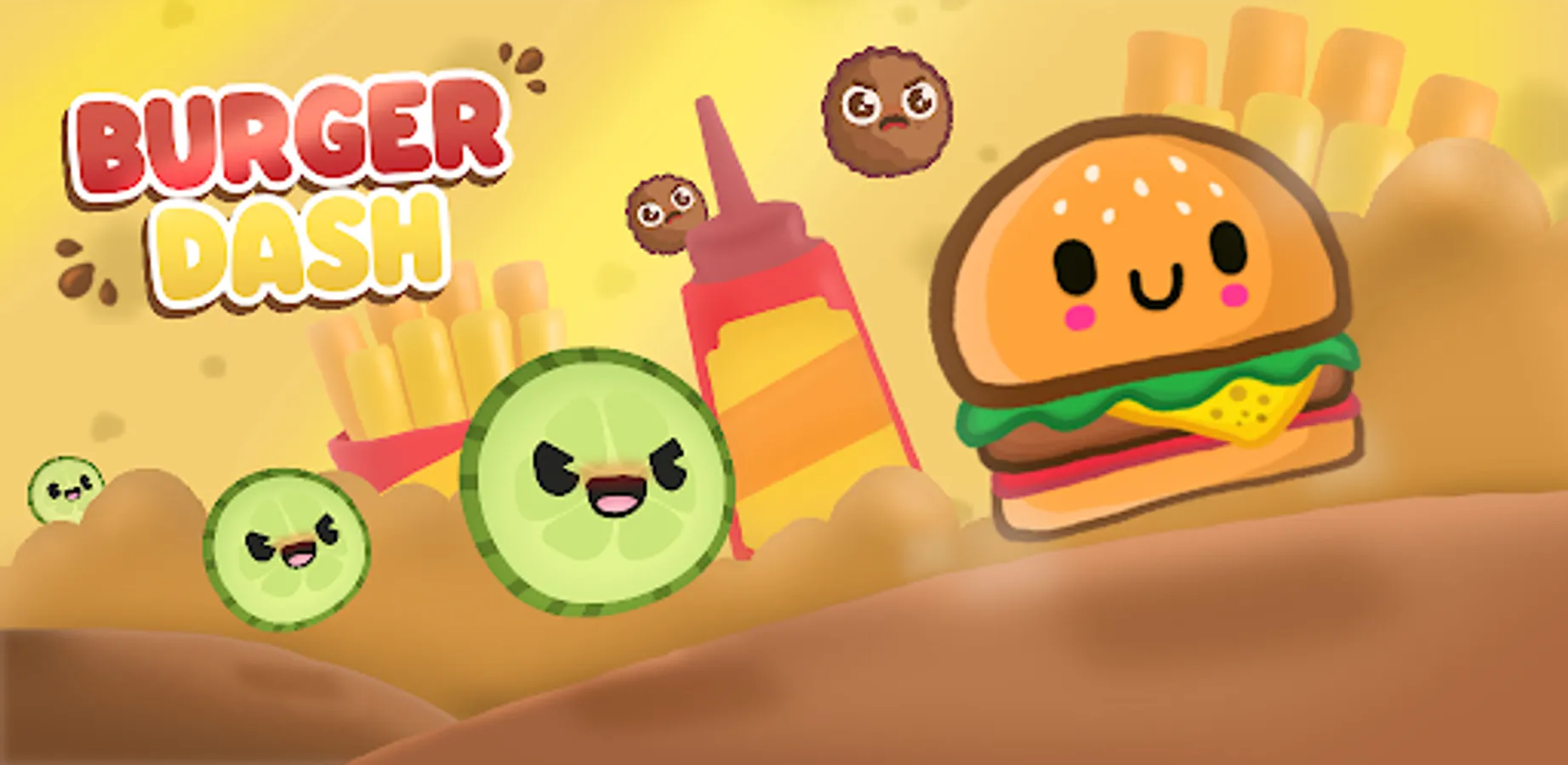 Burger Dash is a fun endless runner game featuring a cute little burger as the main character. You control the little burger by a virtual joystick and move it around the scene to avoid other food enemies such as pickles slices, meatballs, etc.