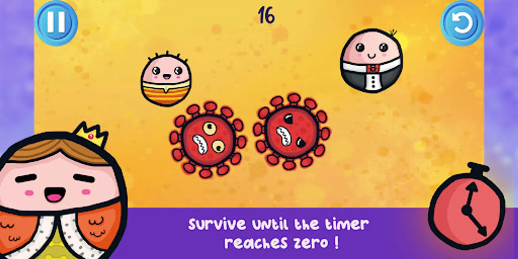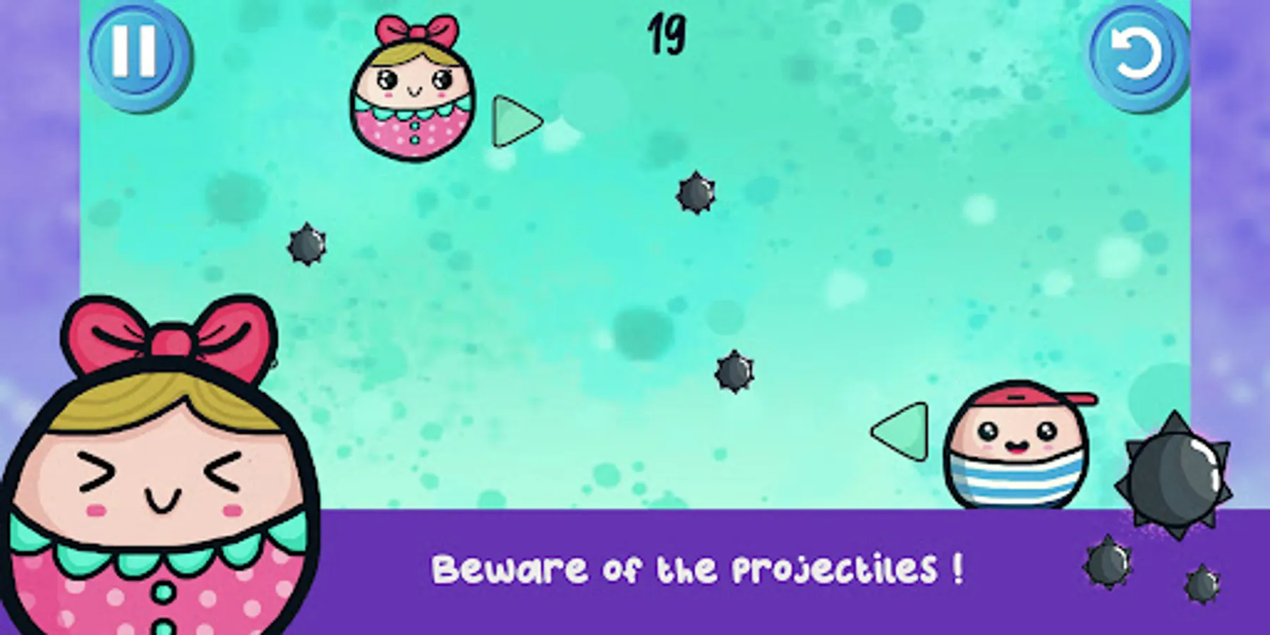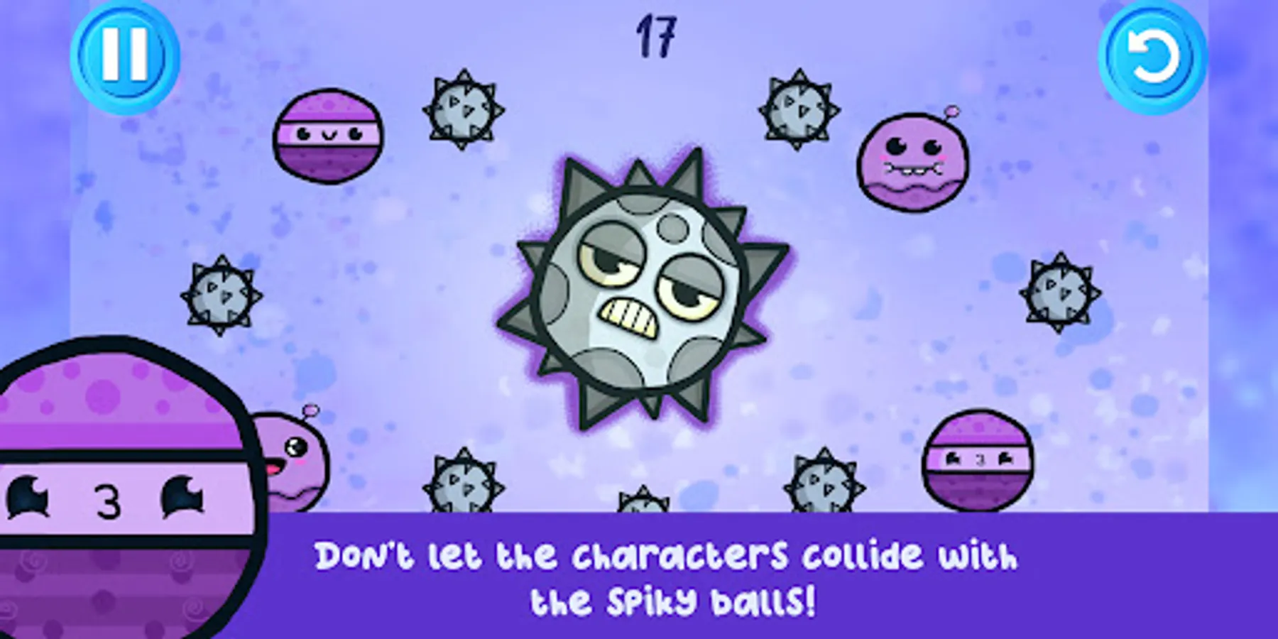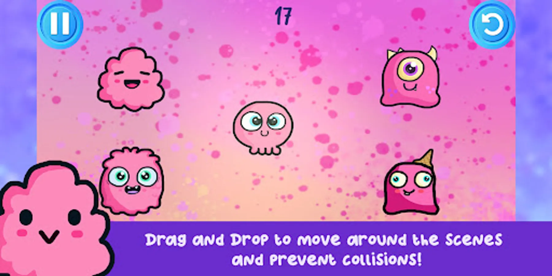 In this colorful game you need to drag and drop all of the cute doodles characters that appear in each levels , you can also tap and hold the characters to move it around the scenes. Do not let the characters collide with each other. the main point is to survive and hold on as long as possible until the timer reaches zero. Each levels present unique challenges as well as the cute and tiny doodles characters, a level complete screen will pop out once you accomplish the level.
