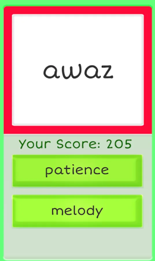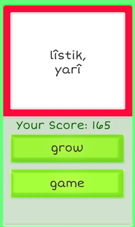 Click on the button/English word that matches the Kurdish word on the screen to score.