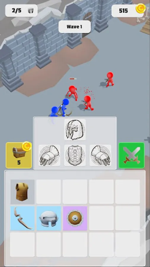 In the game "Assemble Army", you can give units various pieces of equipment such as shields, bows, helmets, and armor to create diverse units with different characteristics. Build an army from these units and send them into battle against enemy forces. Manage your army and choose suitable unit types to win in different combat scenarios.