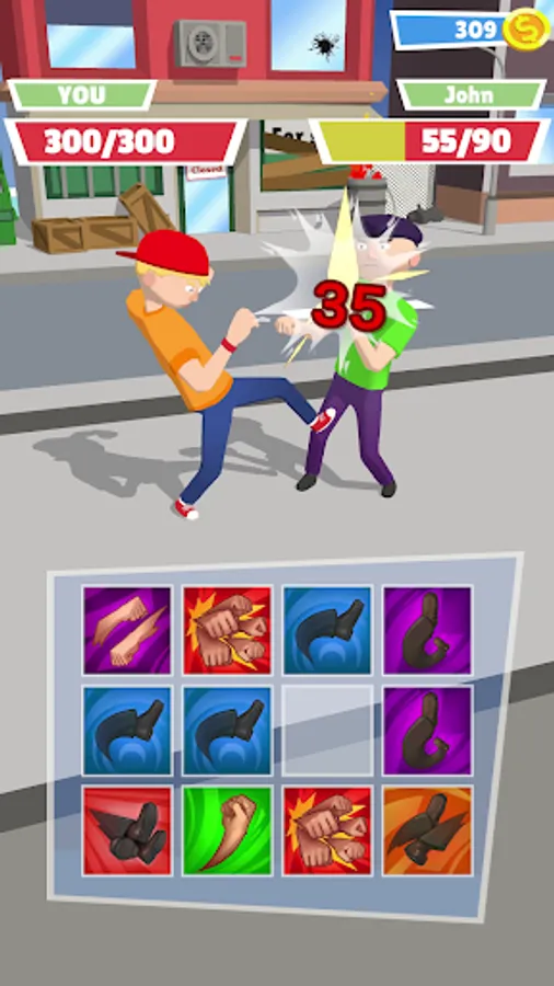 Make powerful combos by combining different types of attacks. Collect coins as you progress through the levels, pump up your strength and health, and move on to fight more powerful opponents!