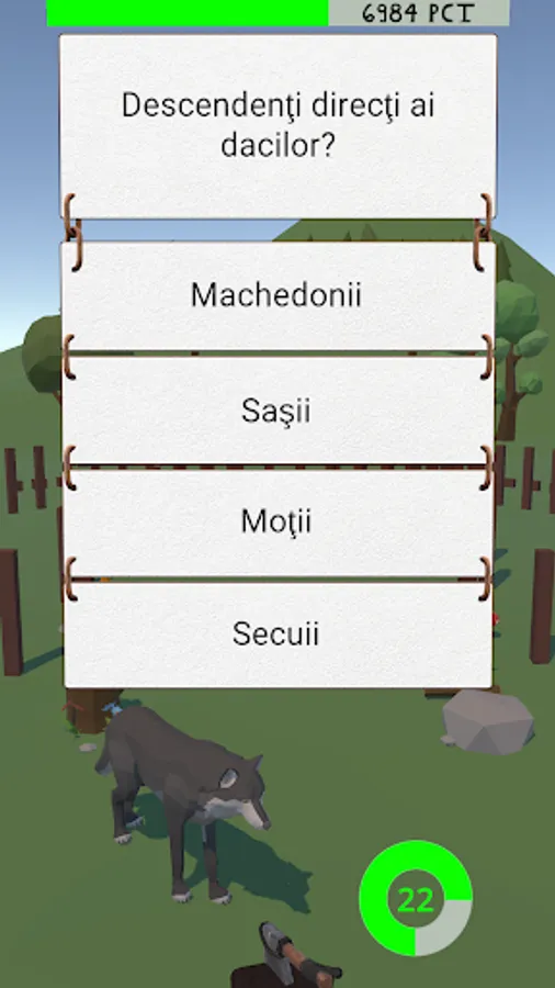 General culture game set in a virtual Sarmizegetusa. Among the ruins of the Great Round Temple, the player finds himself with a map of Romania, which he must conquer county by county.
