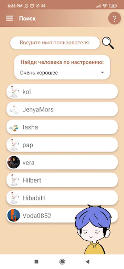 -You can also write to a completely unfamiliar user by finding him using the mood filter in the search!