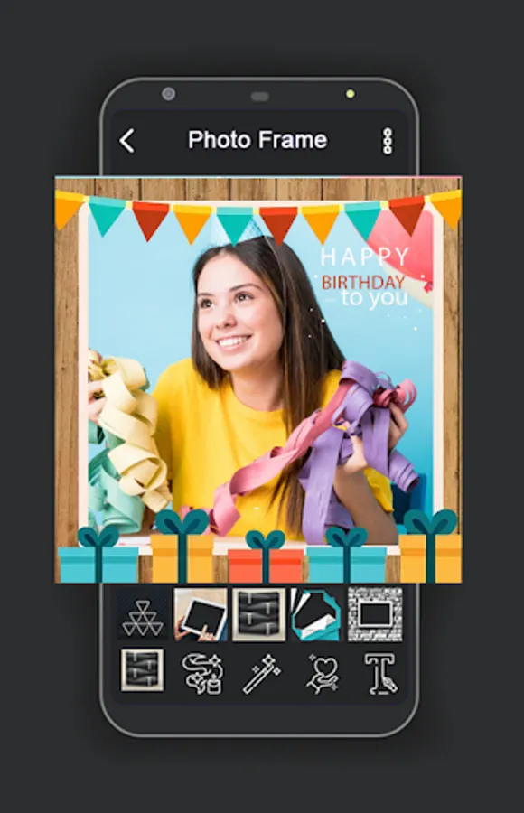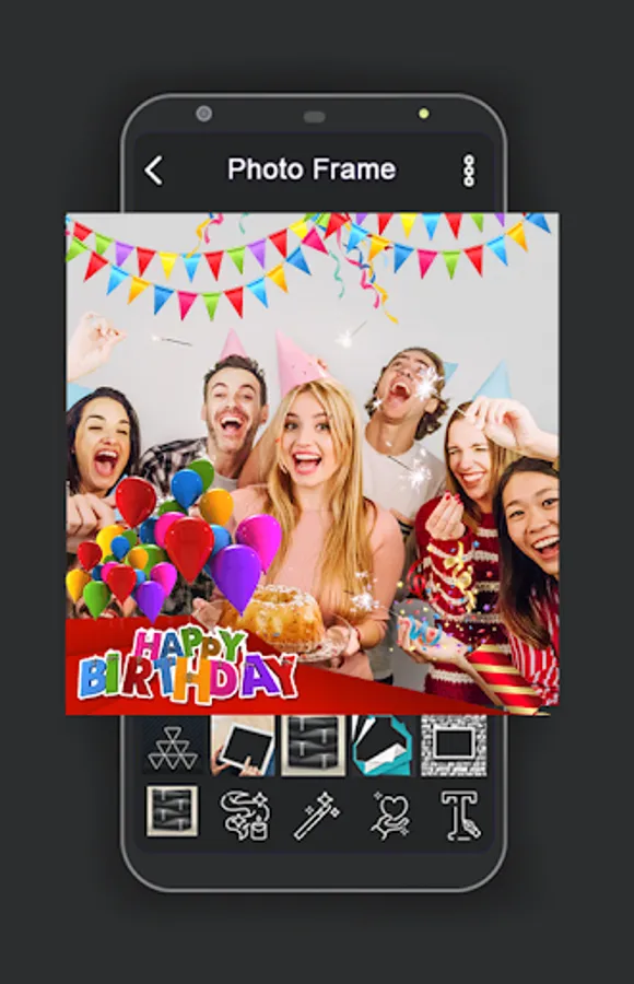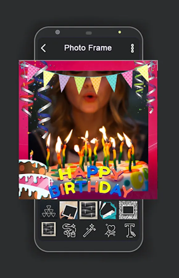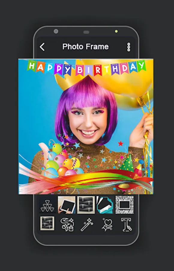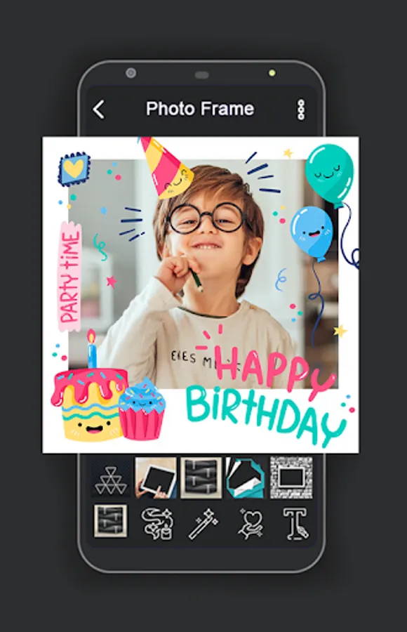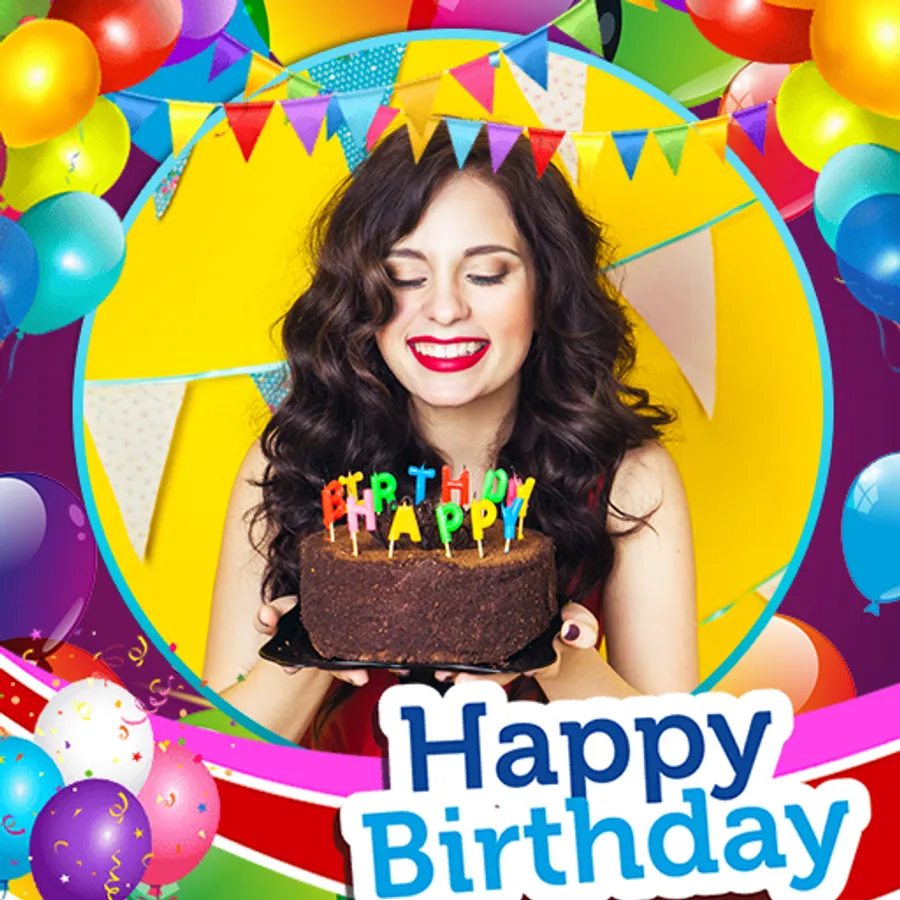 The best Birthday photo frame, birthday frame cake photo with your photo and Birthday wishes text. Make personalized photo frame with cakes and balloons.
