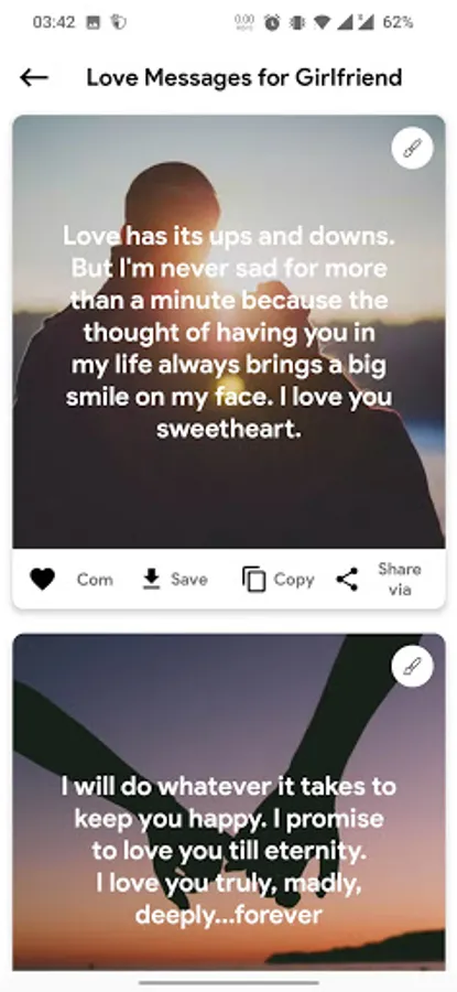 Download this app now and get access to our huge collection of love messages love quotes and caption for free! By using this app you can share all types of status with your fiance, boyfriend girlfriend husband or wife via social media sites.