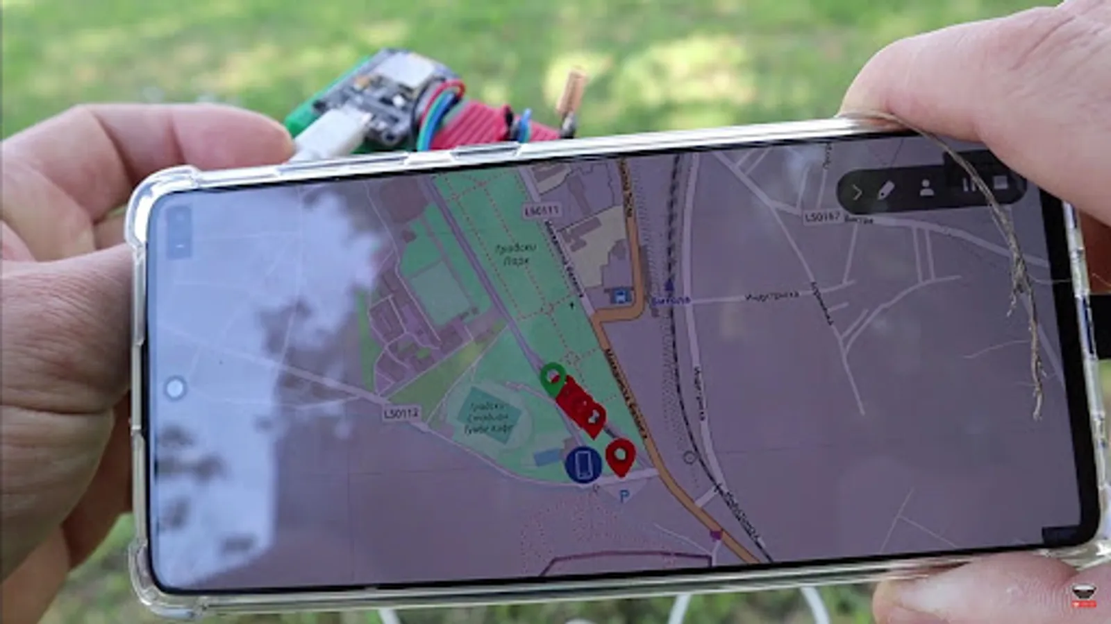 The app uses serial communication to receive the commands from the microcontroller, and visualize them on the map.