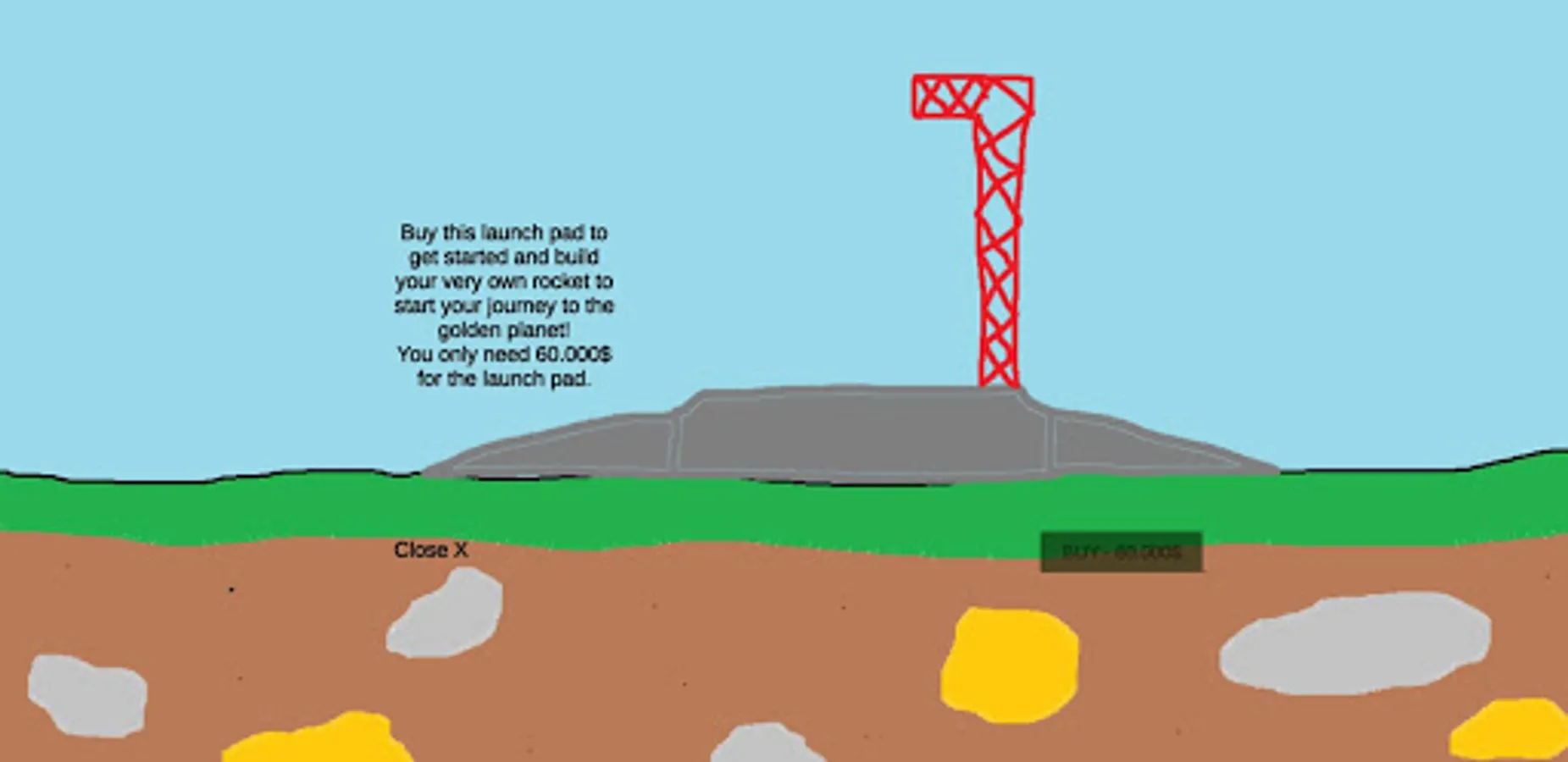 Clicke dich durch das Spiel, sammle Gold und verkauf es, damit du dir eine Rakete bauen kannst, um Planeten zu entdecken die noch viel mehr bieten!