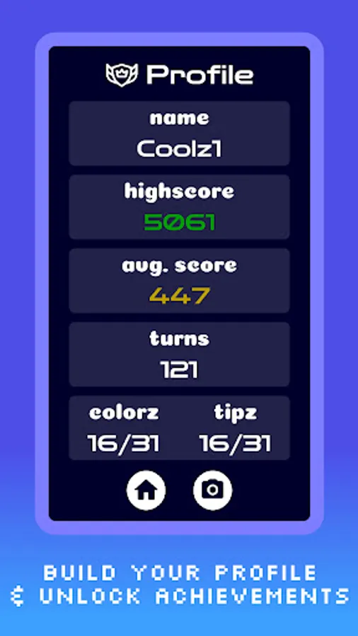 Want to monitor your high score, average score, number of times you have played, colors and tips unlocked? We have got you covered.
