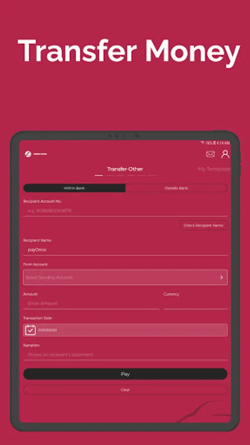 • Transfer funds between your Zemen accounts and to other financial institutions