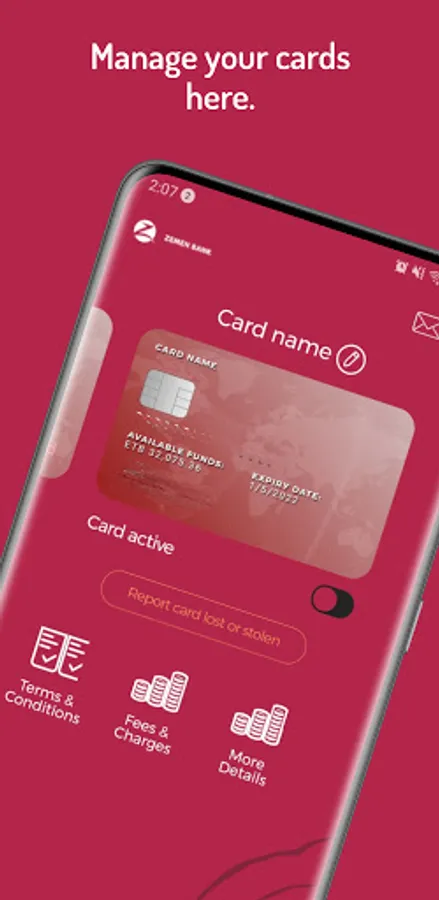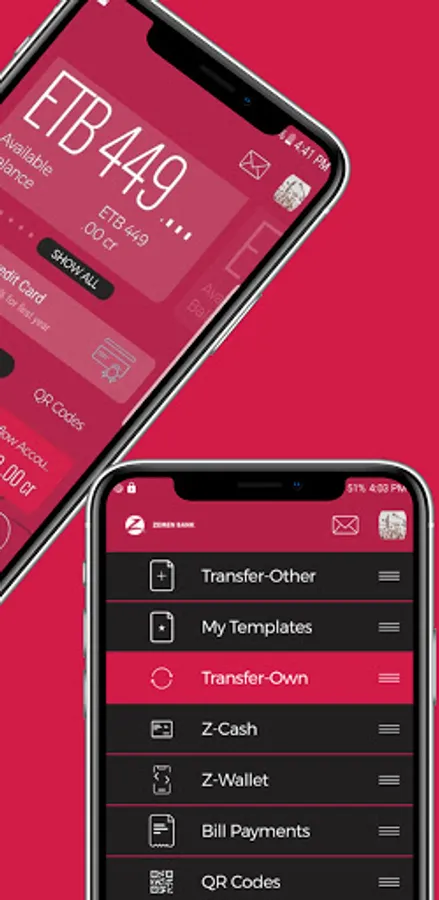Simplify your life and stay in control with Zemen Mobile App. Through the App you will be able to manage your accounts, Z-Cash purchase/redeem, add cards to digital wallet, transfer funds, and pay bills, locate ATMs/branches, get daily exchange rates, self-onboarding/activation, USSD services all within the app.
