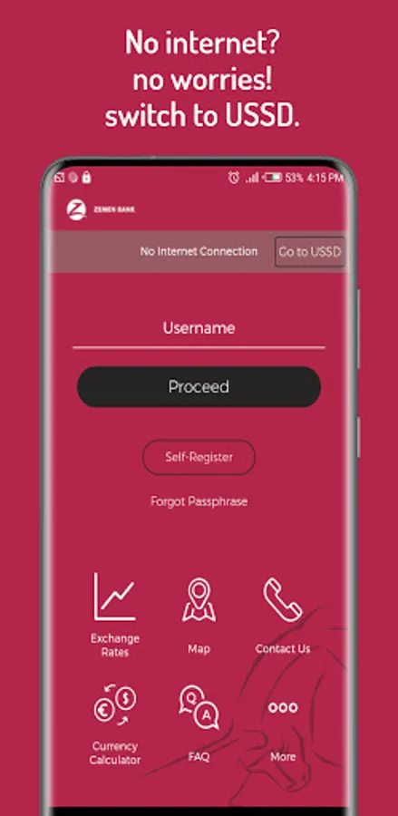 • Through the App, if there is no data connection, you can use our USSD service to get the basic services
