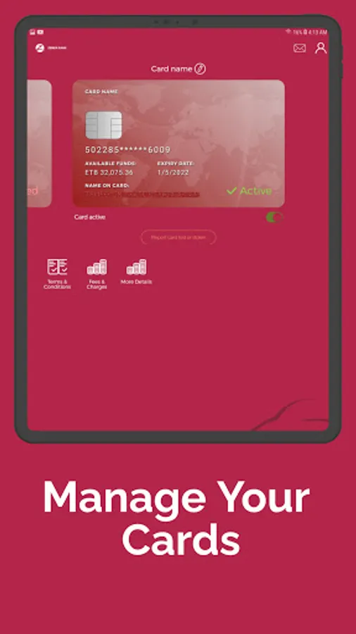 • Easily activate or turn cards on or off, add cards to digital wallets , view recurring payments, and manage account access