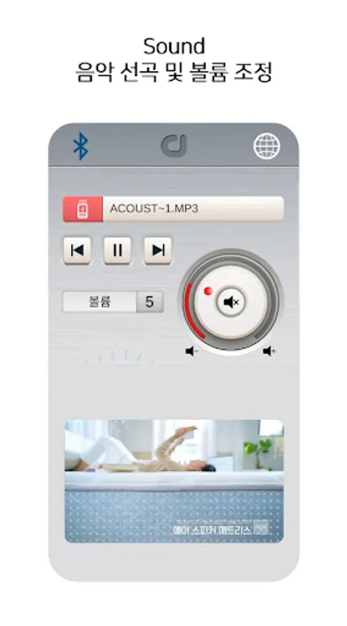 *에어 매트리스 전체를 스피커로 사용하며 음악 선곡 및 20단계 볼륨 조절 기능