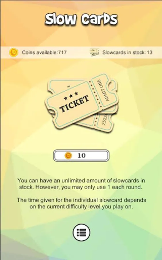 Did we mention the coins? Oh yes, you get free coins just by playing. Spend these on slowcards or new backgrounds and color themes.