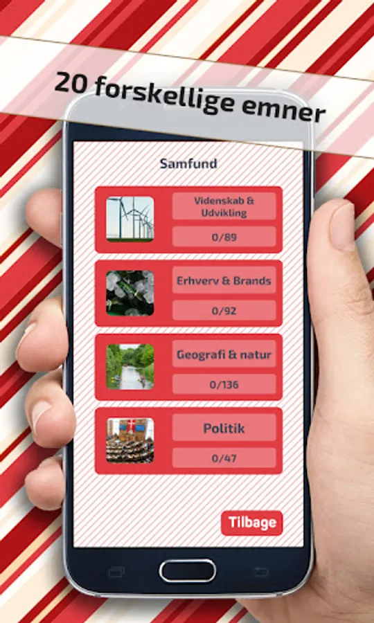 You can also press the Menu icon in the top left corner. Here you can change the category/topic, go to settings where you can switch the music on/off, etc.