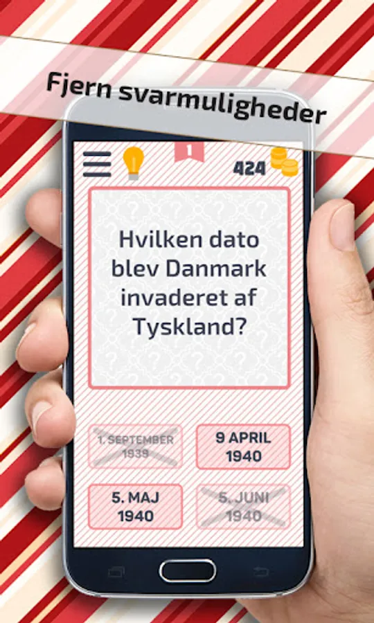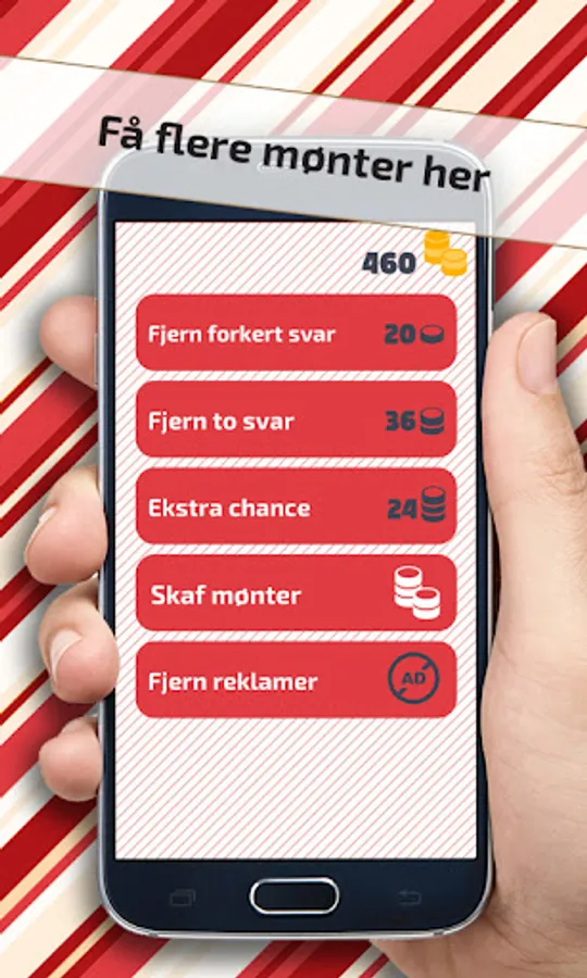 Now comes the fun! You are now shown 4 answer options, and then it is all about choosing the right one. If you are in doubt, in the help menu you can choose to remove either one or two answer options or ensure a correct answer. This costs a little coins, but it is worth it. But beware - if you answer incorrectly, it also costs coins.
