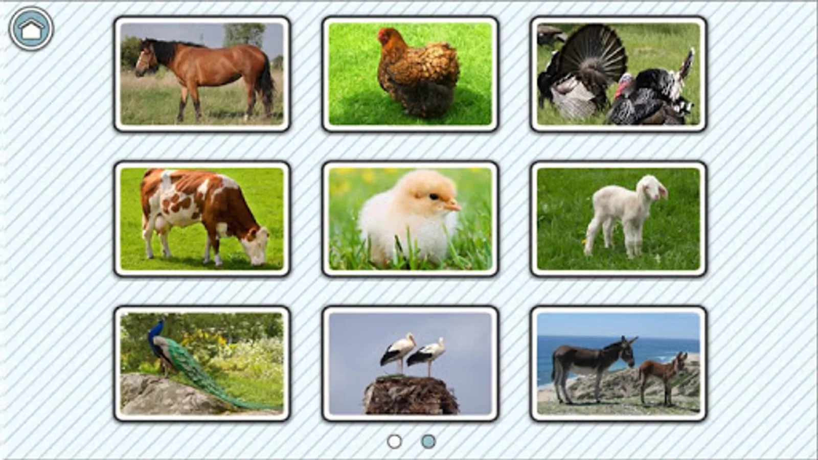 By pressing each animal, the image is displayed in full size while listening to the sound the animal gives and subsequently the name of it.