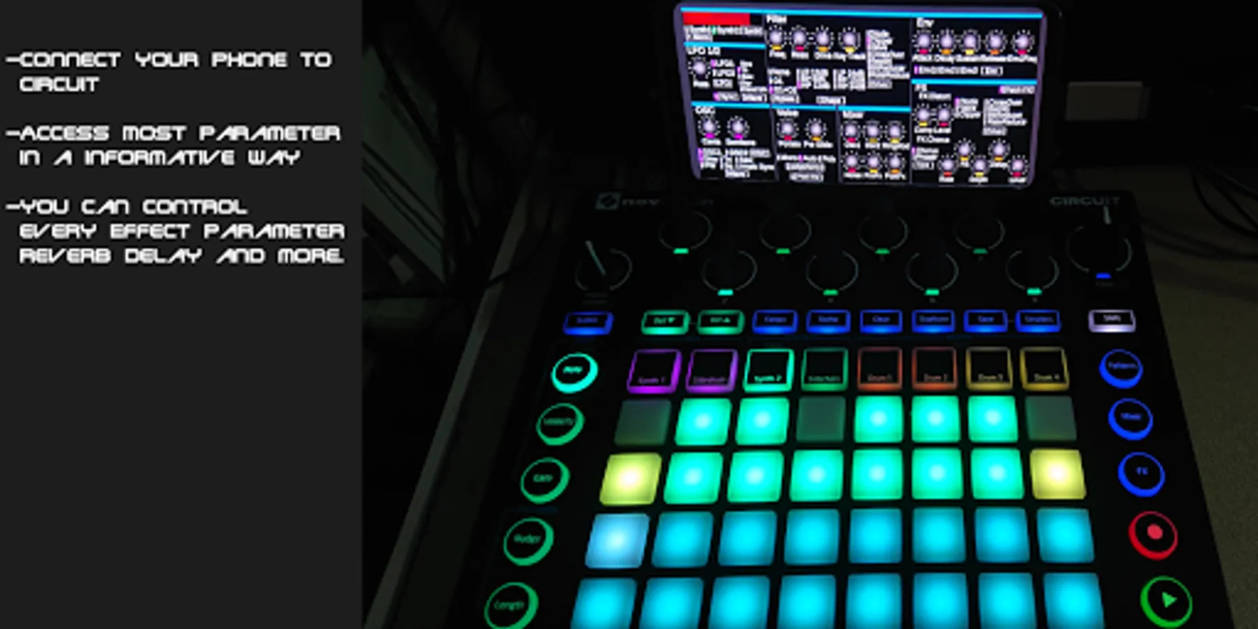 Connect your phone with Circuit, your phone now work as a touch control of your groovebox.