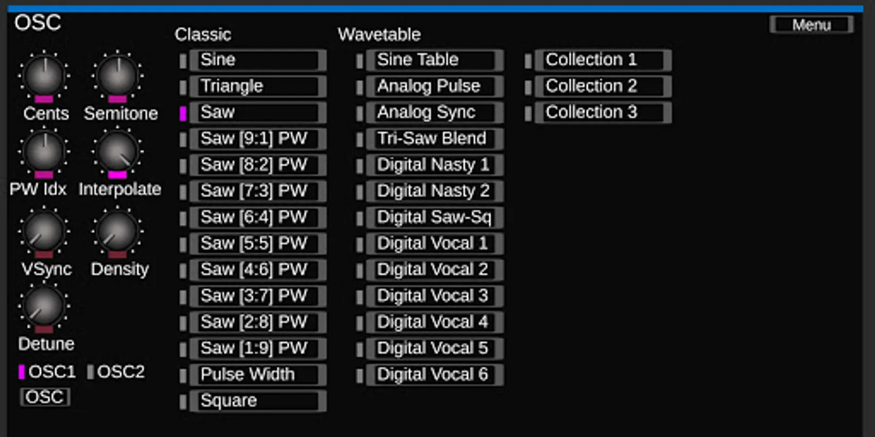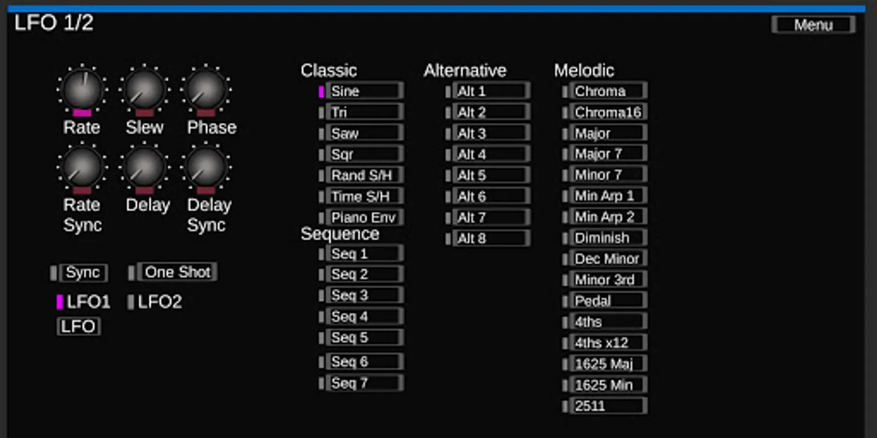 You can also set the LFO and OSC Wave form,