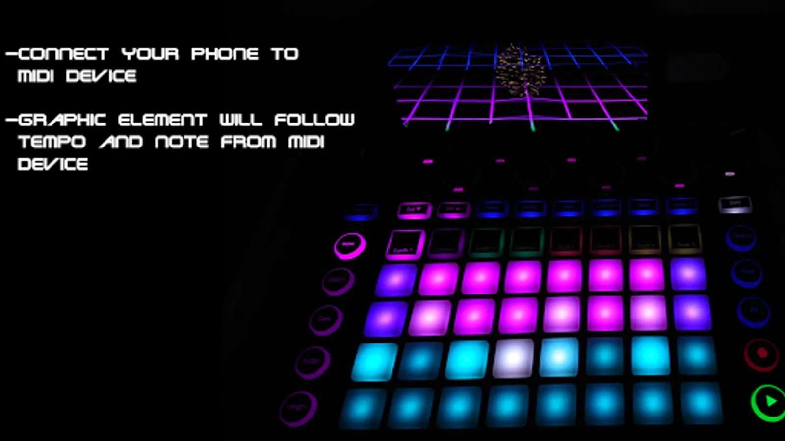 VJ Visualizer is a visual synth that will visually respond to connected midi instrument.