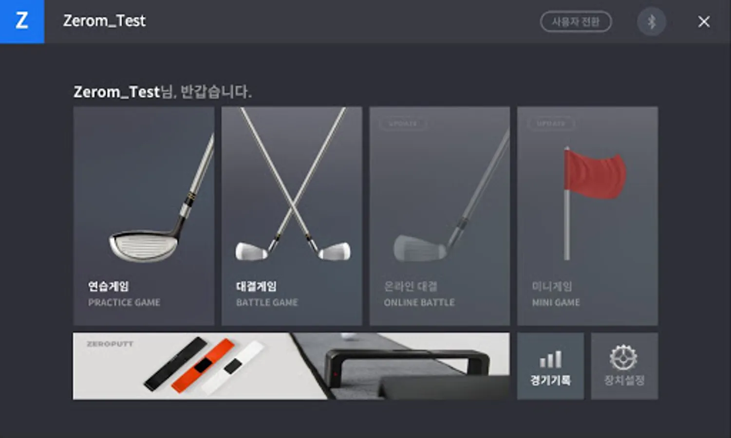 ZeroPutt Game works via Bluetooth communication with the putting exerciser ZeroPutt.